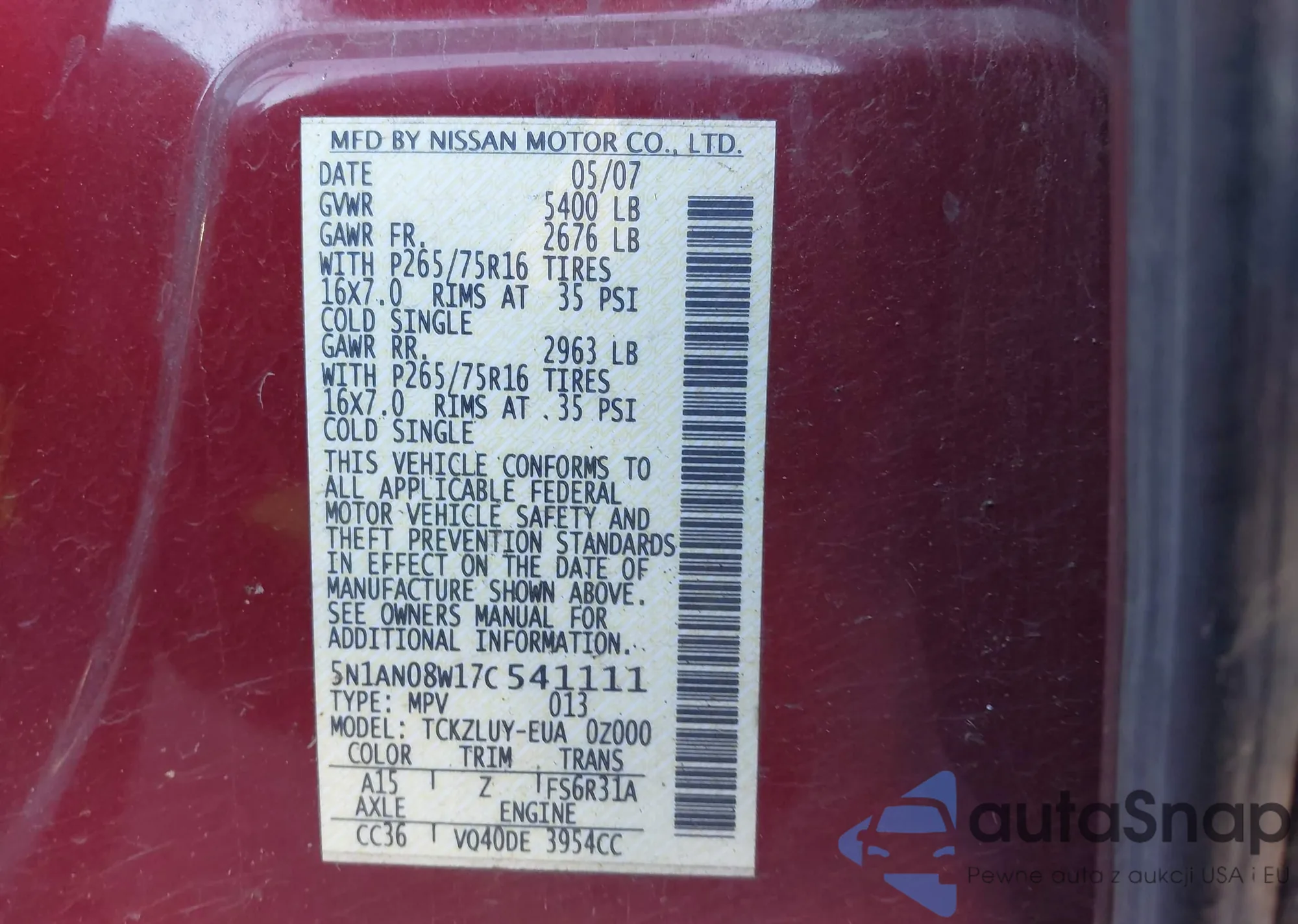 VIN: 5N1AN08W17C541111