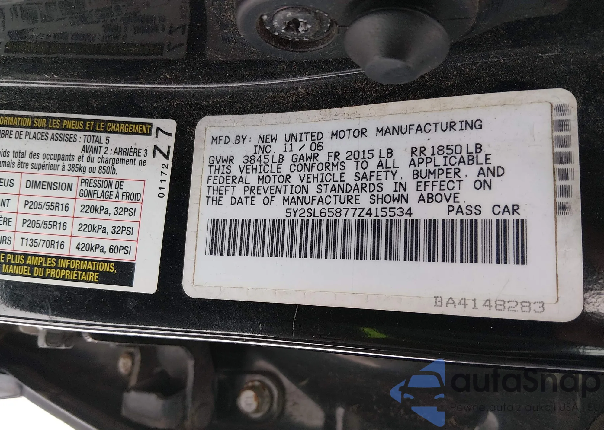VIN: 5Y2SL65877Z415534