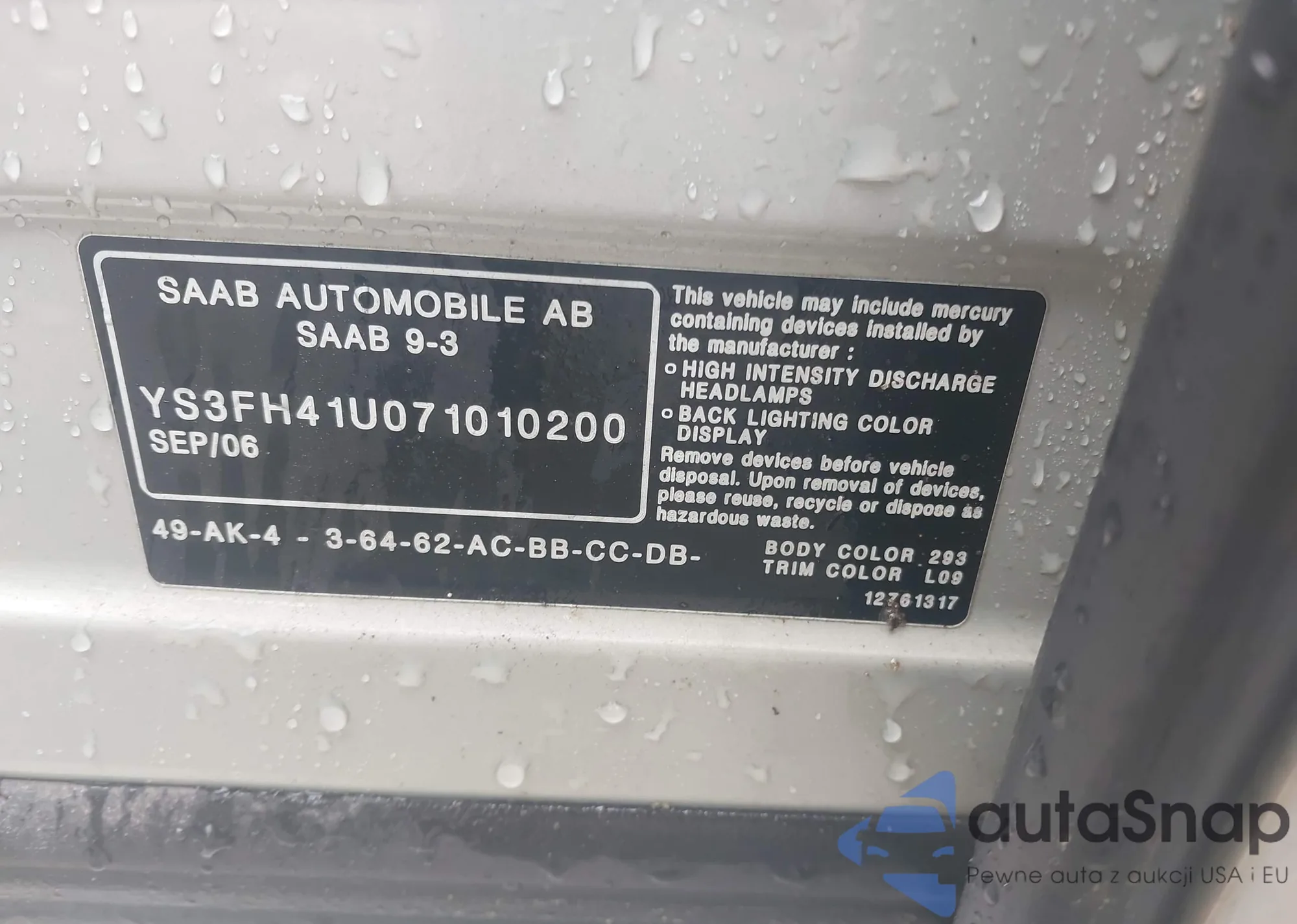 VIN: YS3FH41U071010200