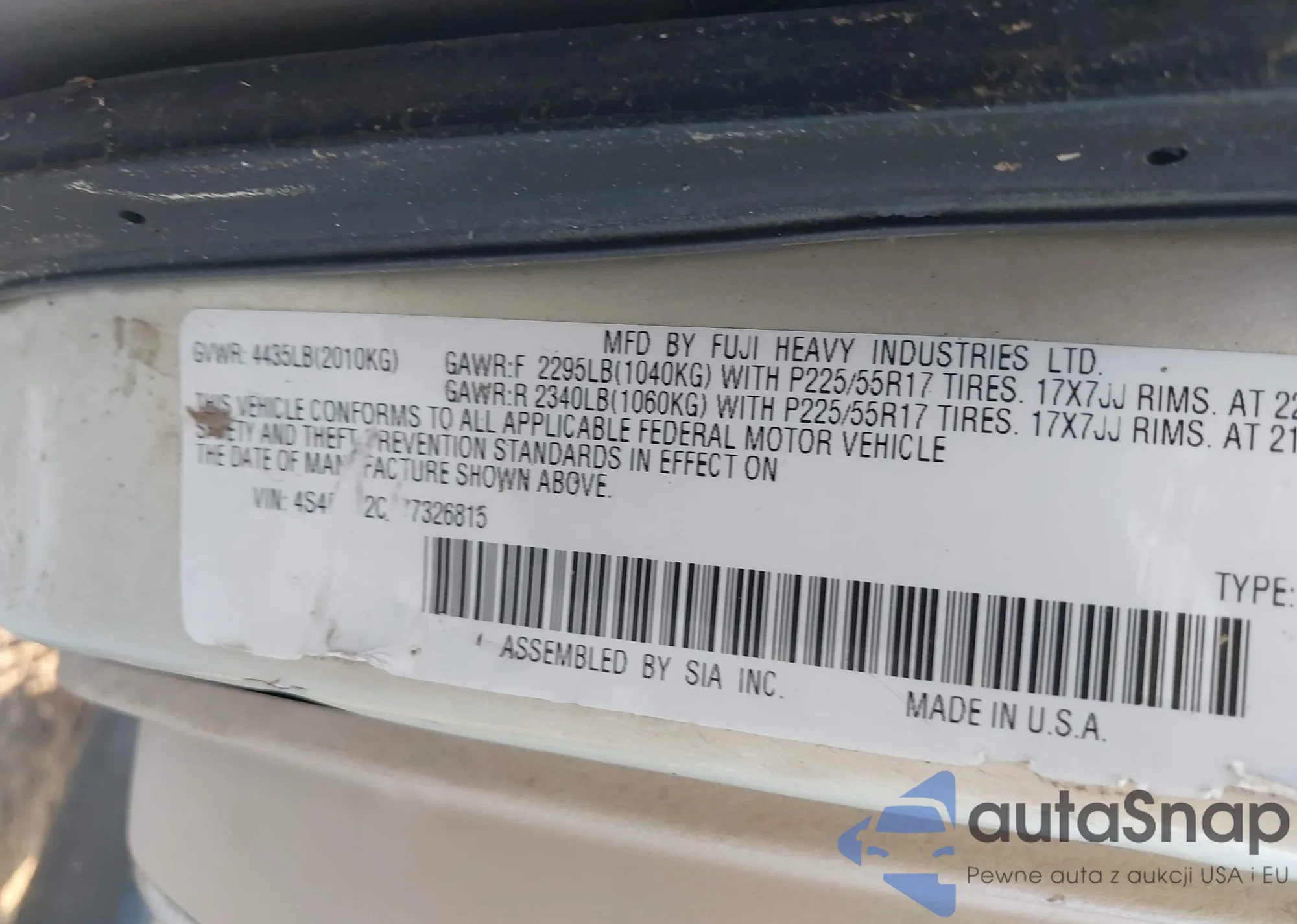 Subaru Outback 2007 – История автомобиля (продан на IAAI)