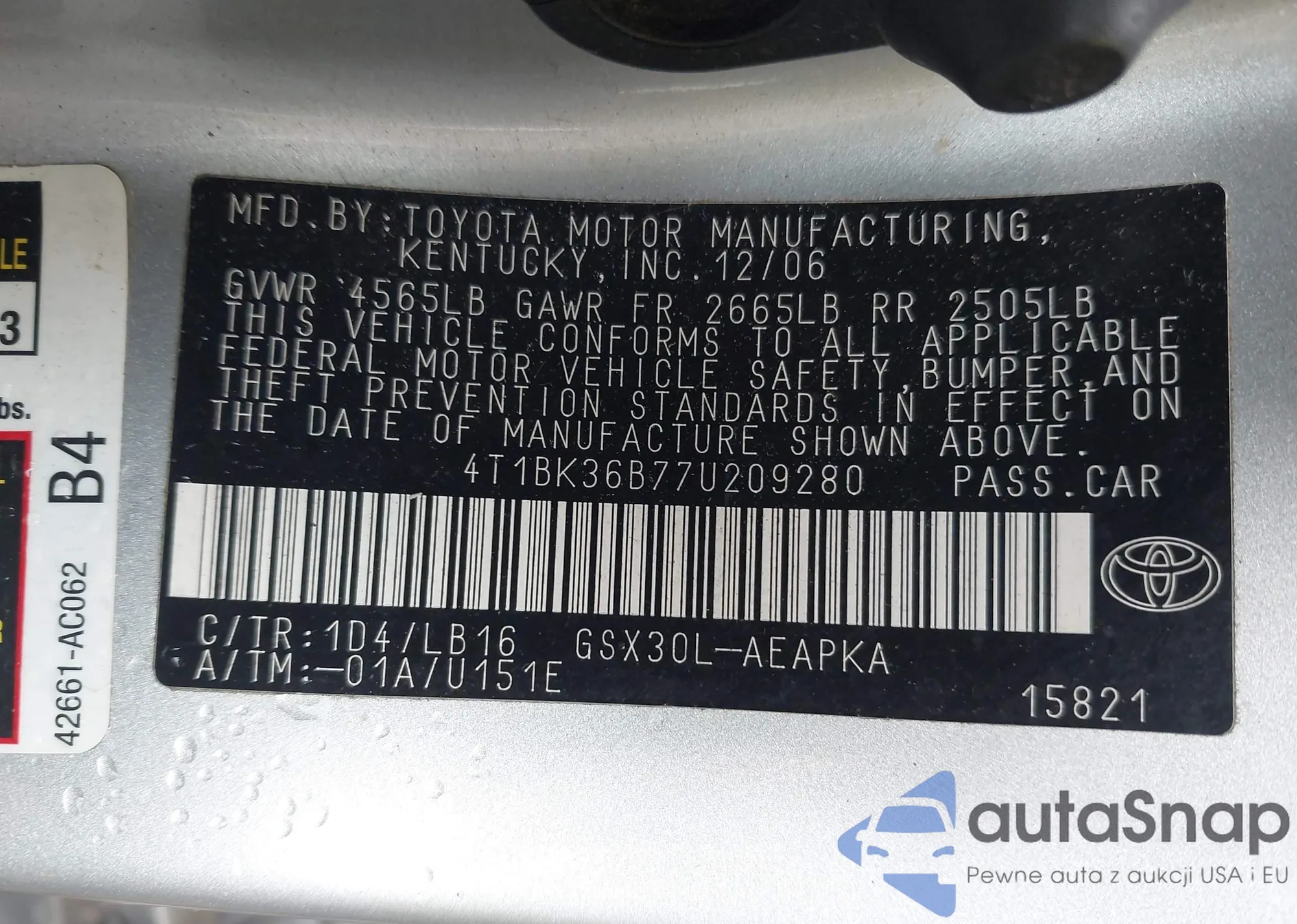 VIN: 4T1BK36B77U209280
