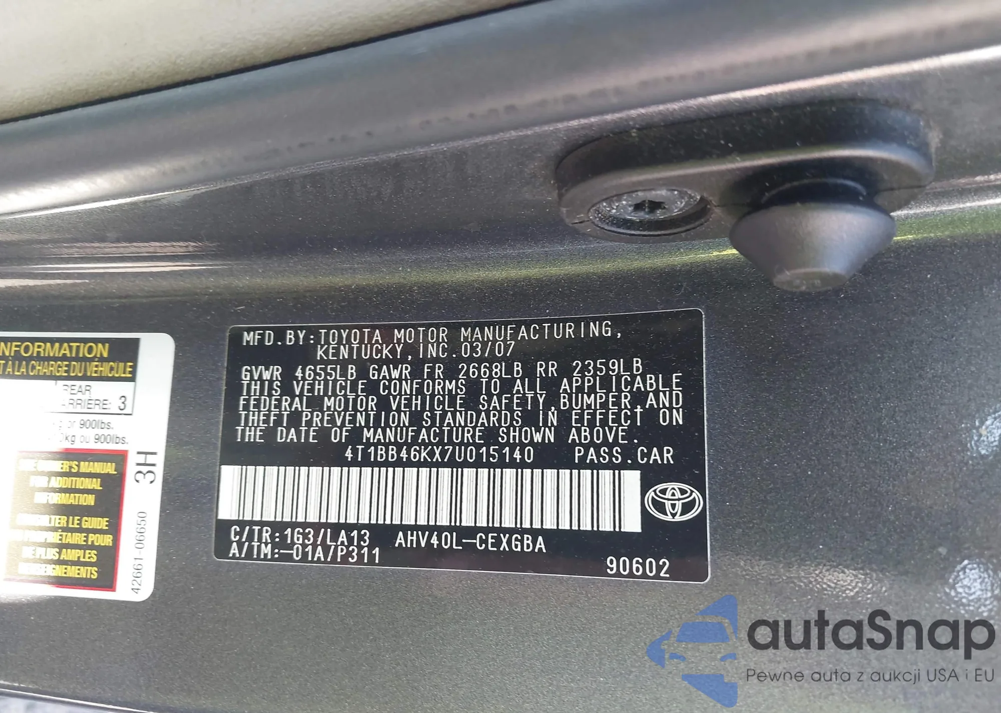 VIN: 4T1EB46KX7U015140