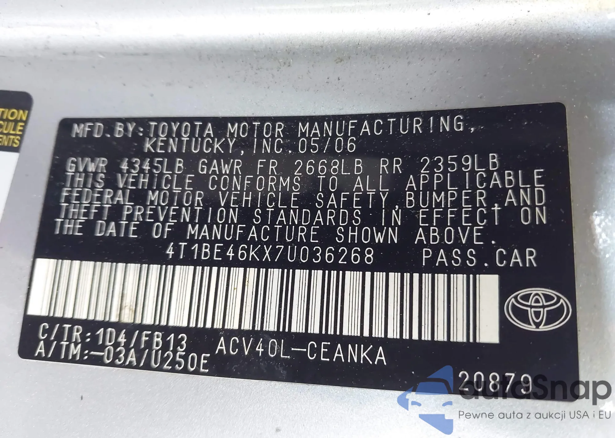 VIN: 4T1BE46KX7U036268