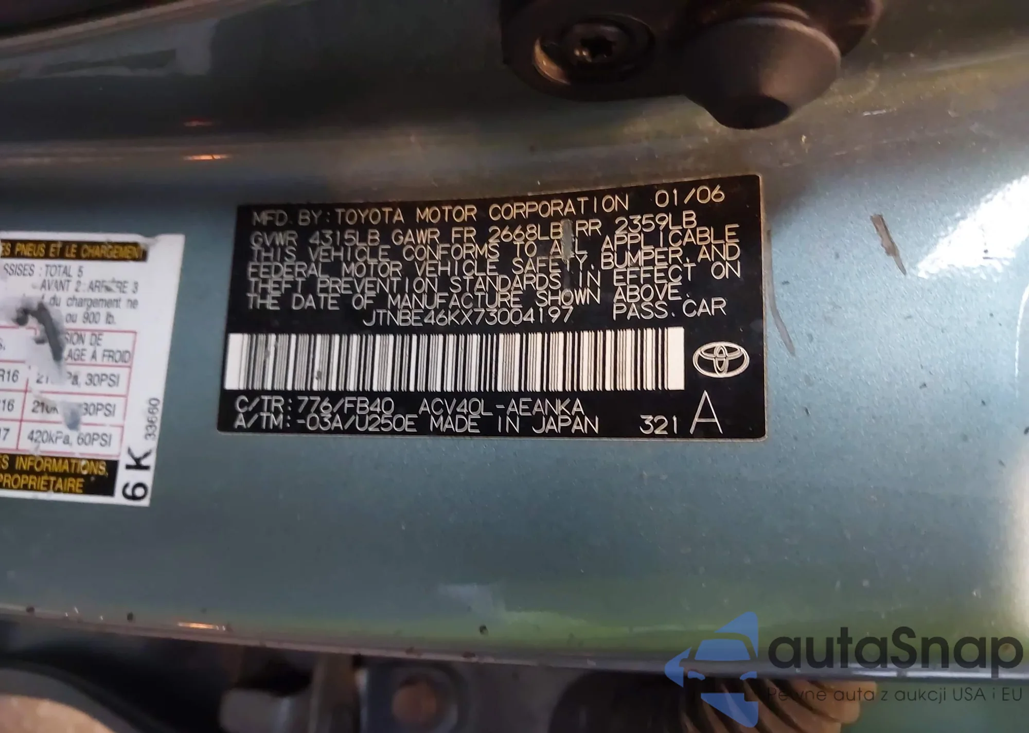 VIN: JTNBE46KX73004197