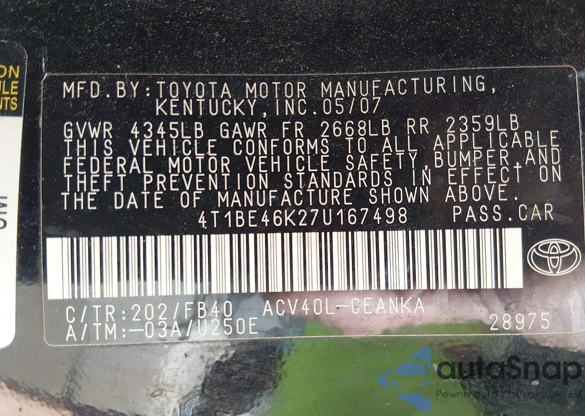 VIN: 4T1BE46K27U167498