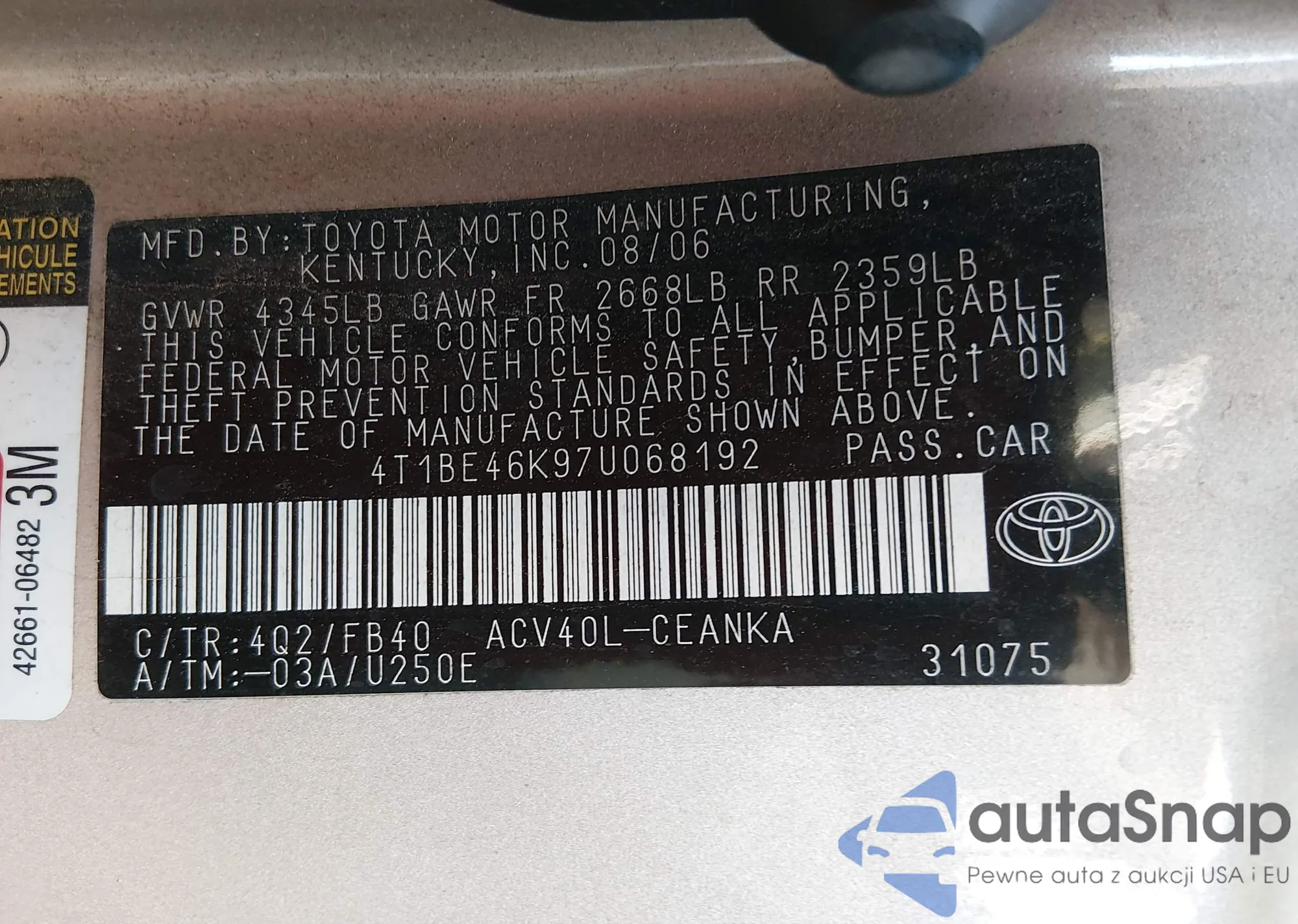 VIN: 4T1BE46K97U068192