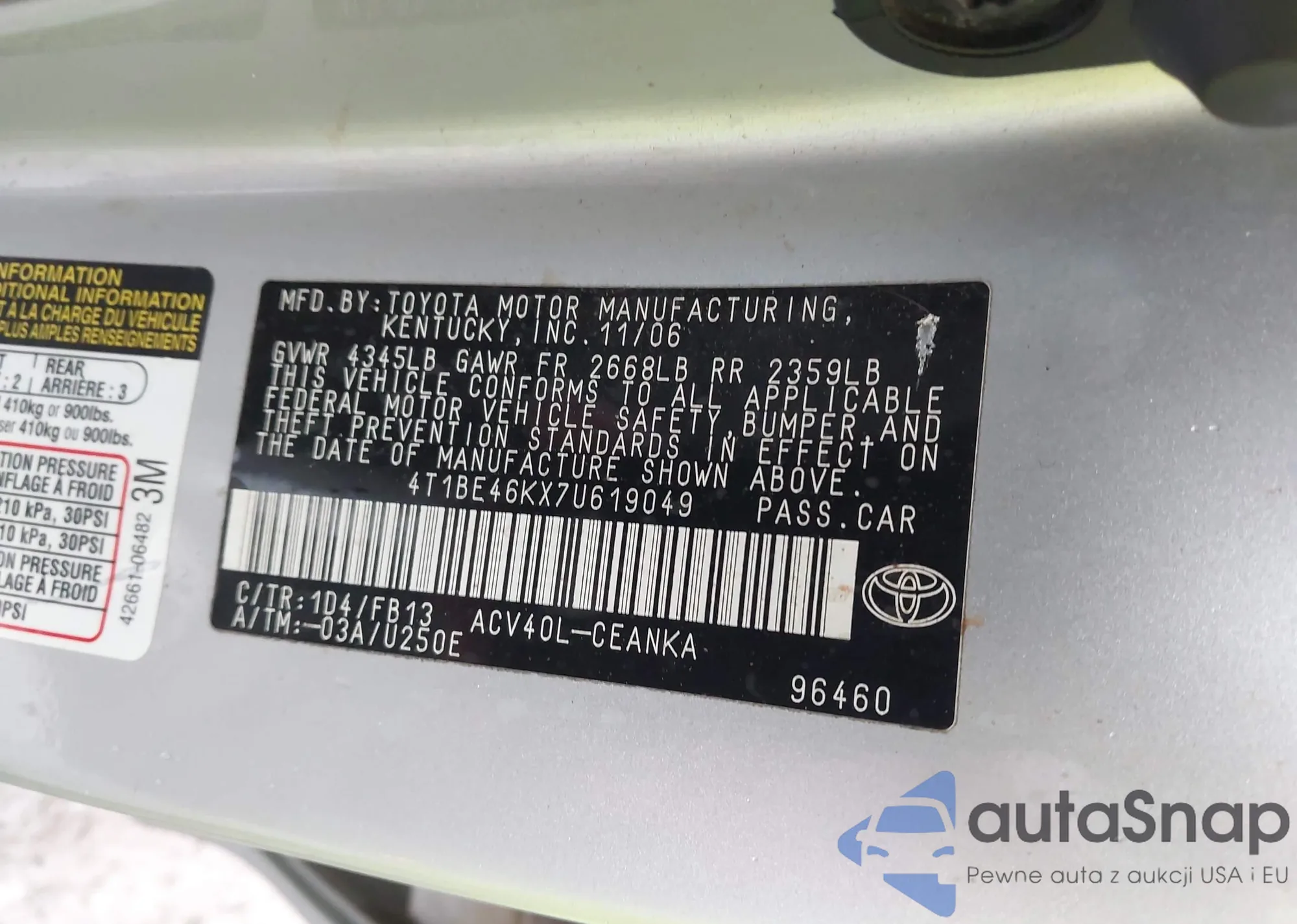 VIN: 4T1BE46KX7U619049