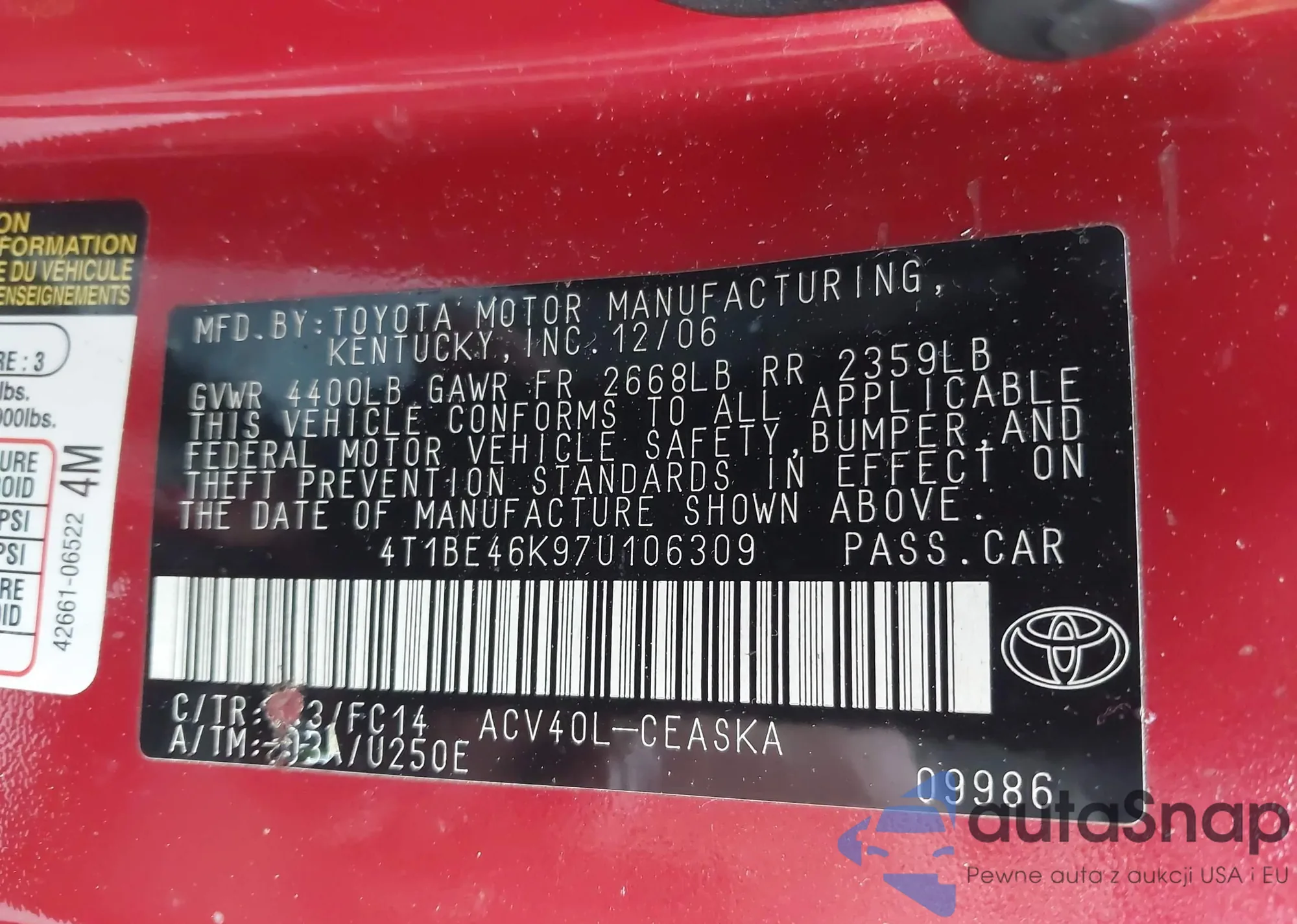 VIN: 4T1BE46K97U106309