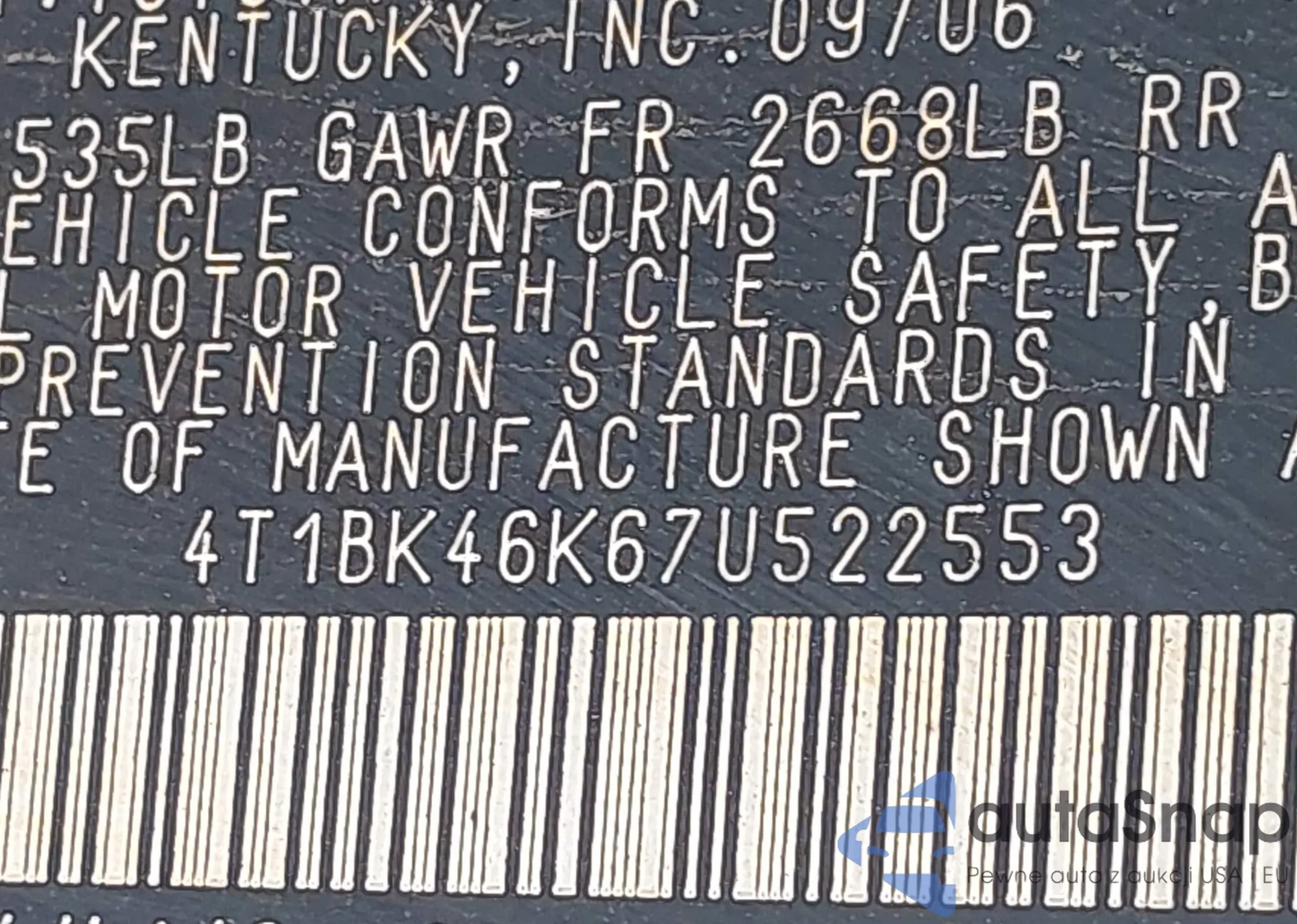 VIN: 4T1BK46K67U522553