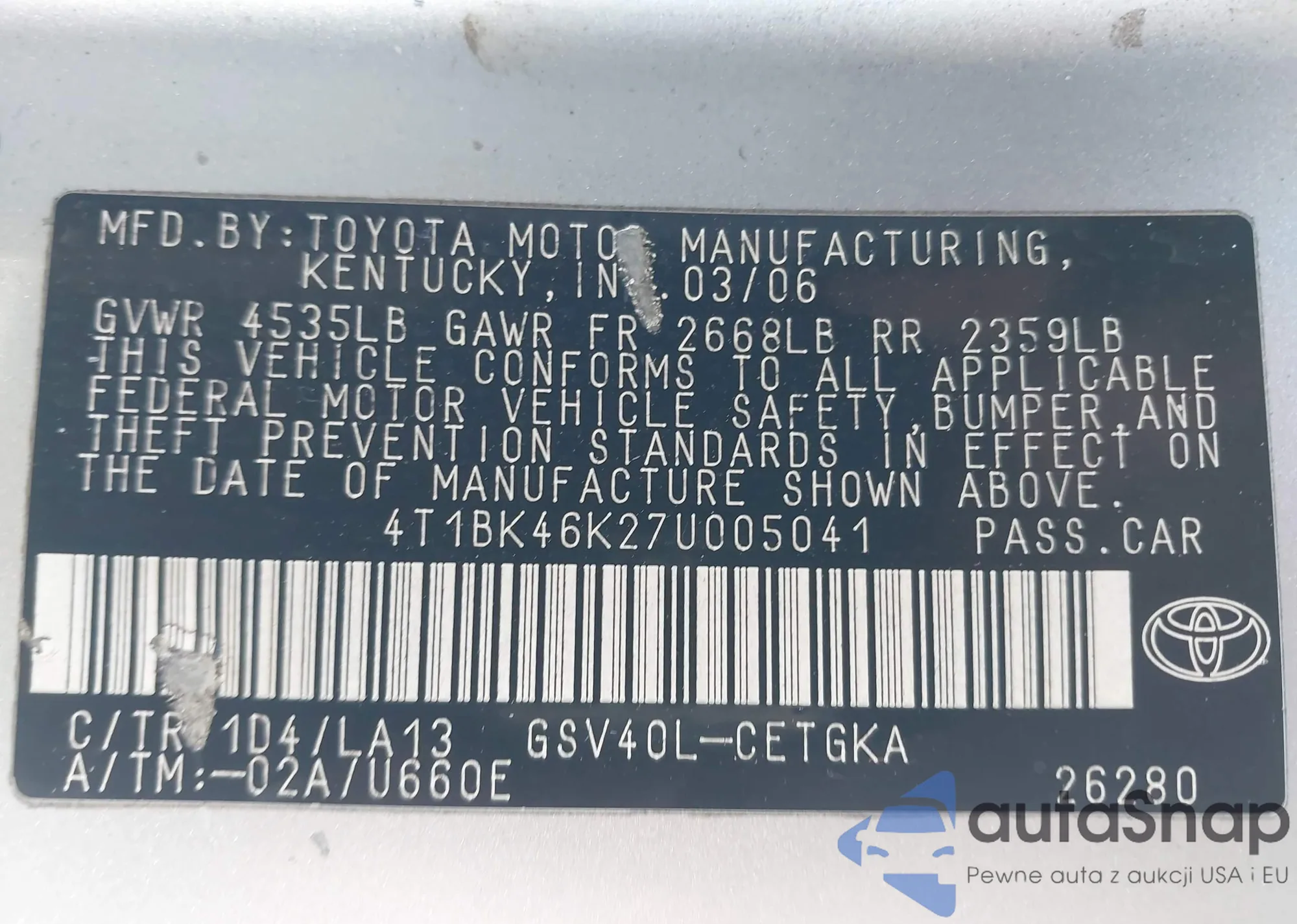 • VIN: 4T1BK46K27U005041