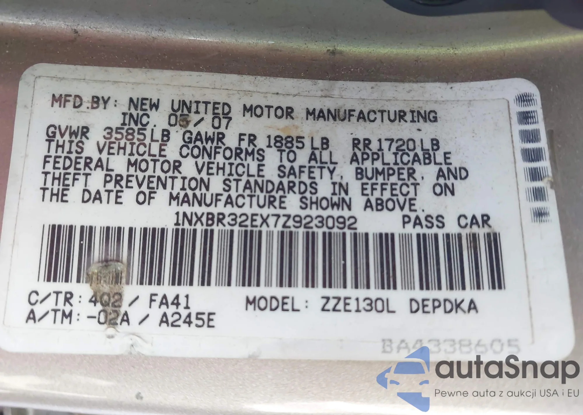 VIN: 1NXBR32EX7Z923092