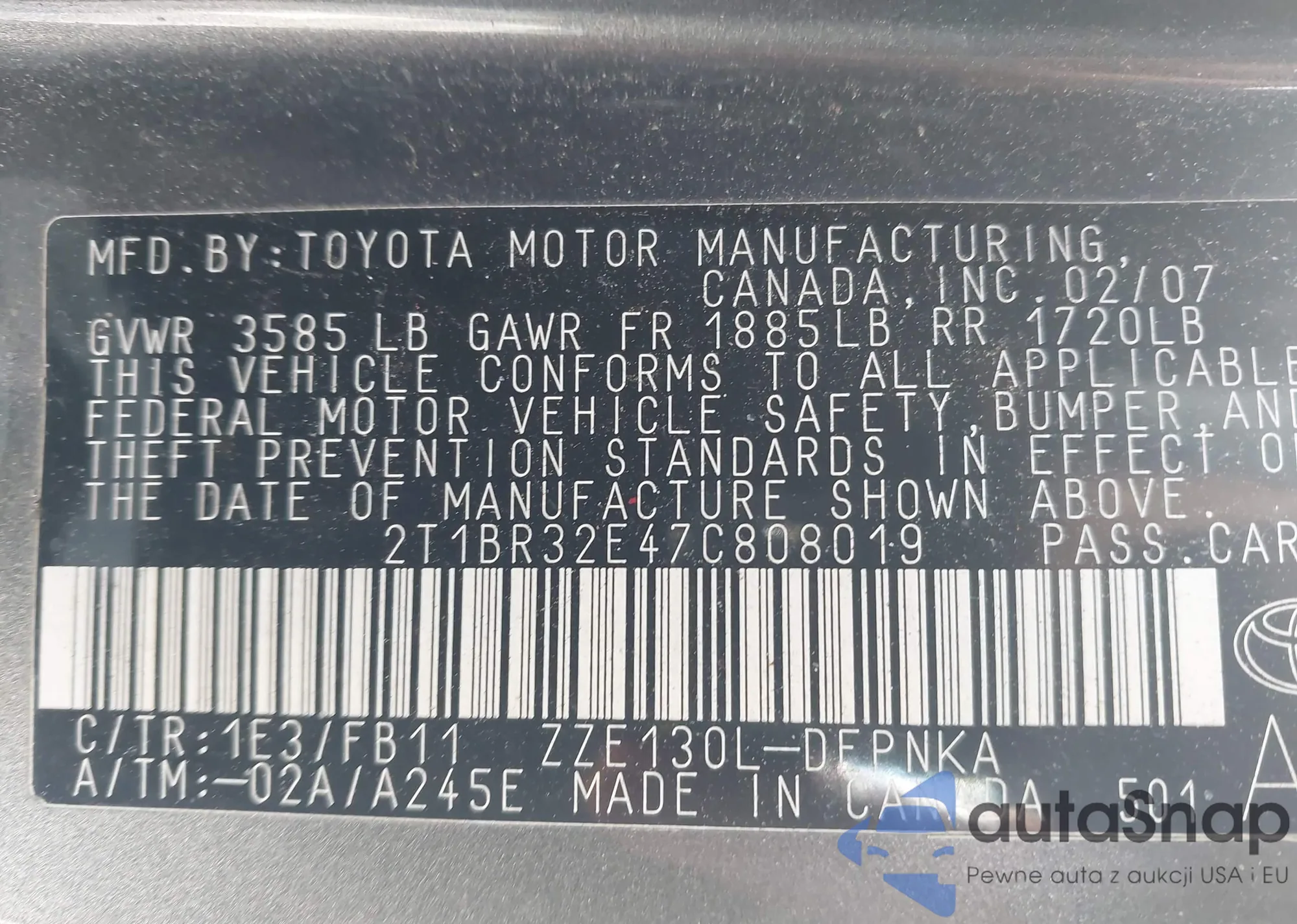VIN: 2T1BR32E47C808019