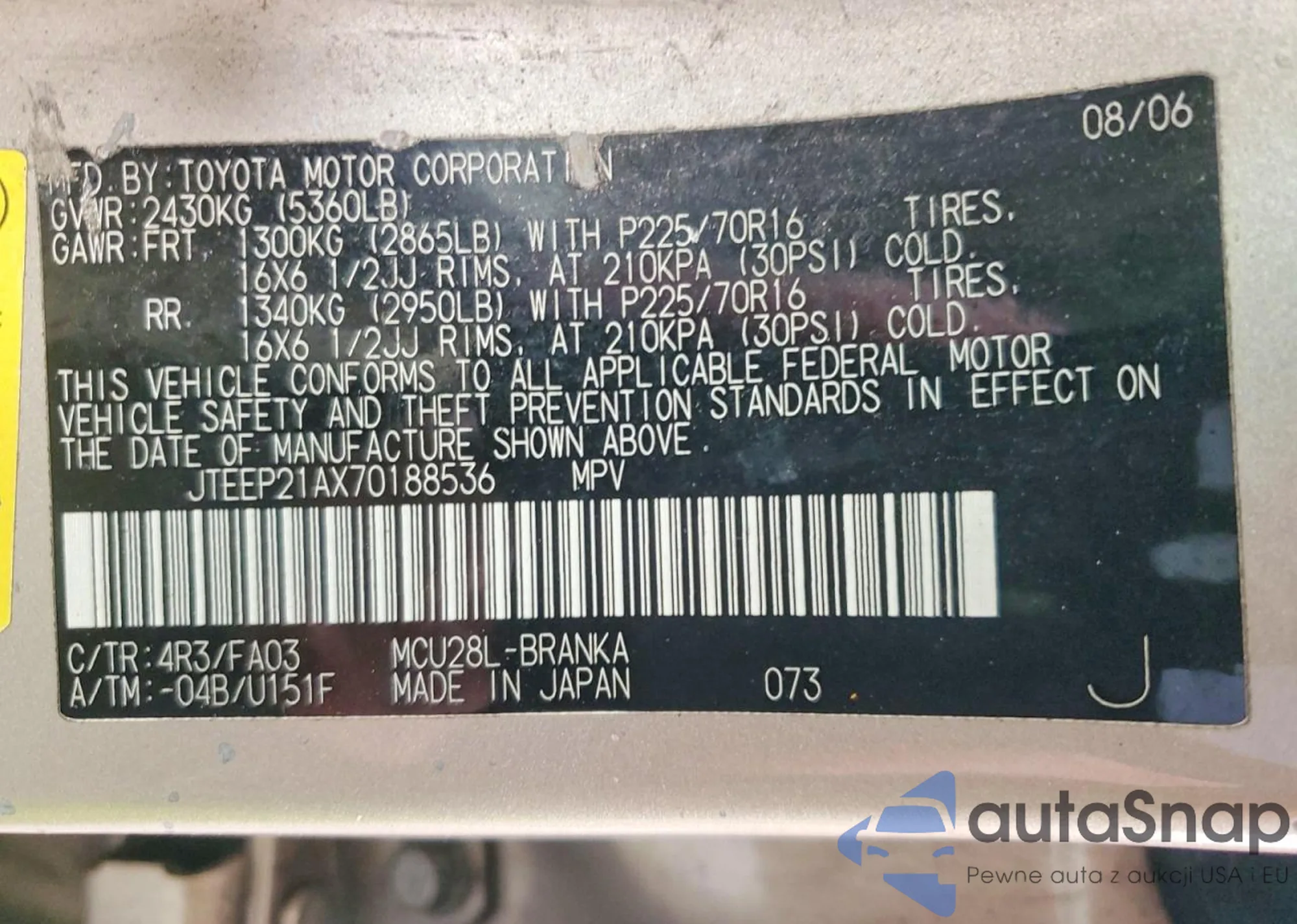 VIN: JTEEP21AX70188536