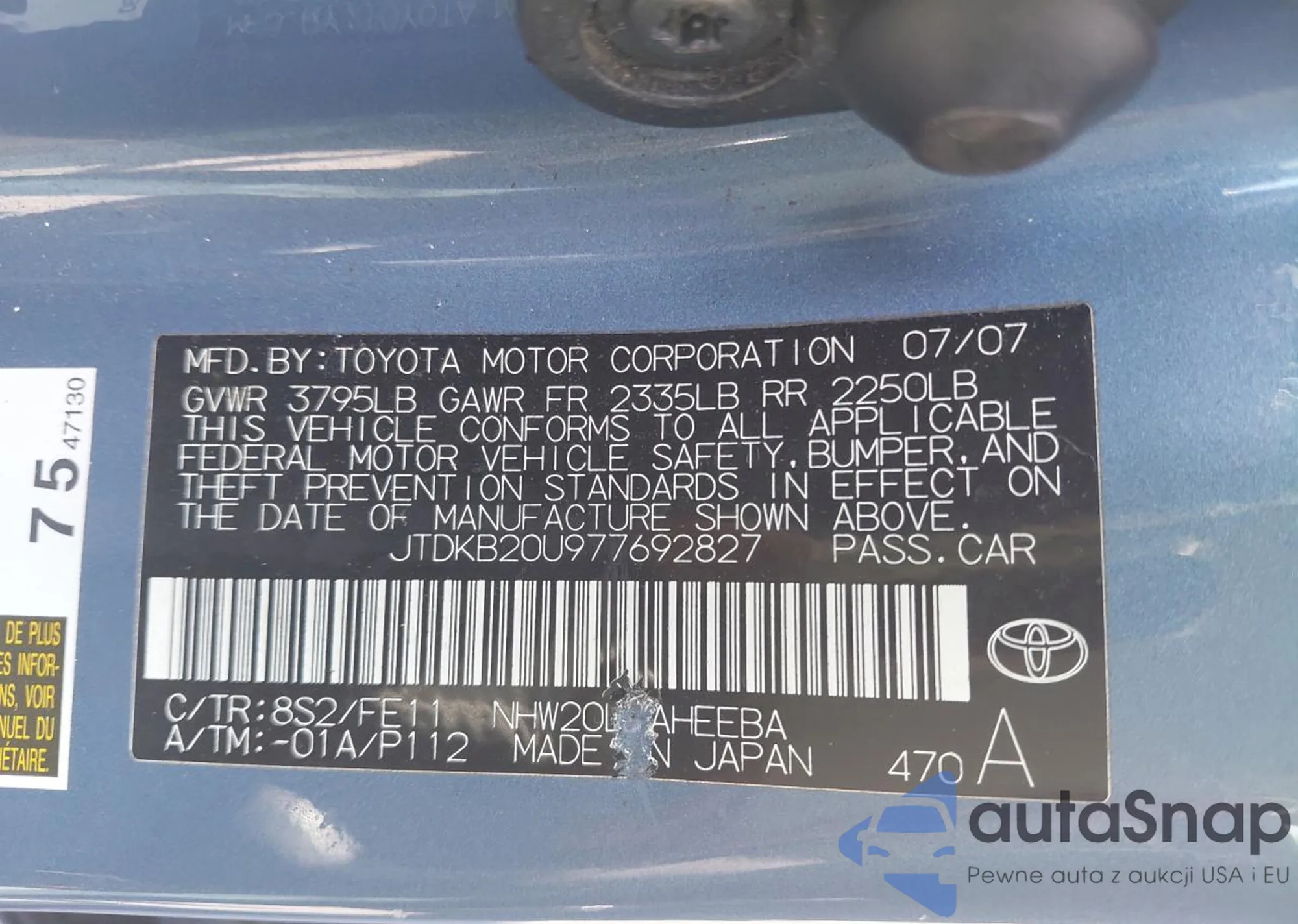VIN: JTDKB20U977692827
