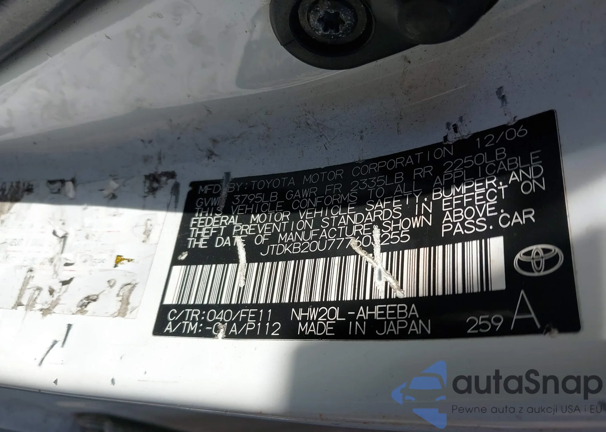 VIN: JTDKB20U777603255