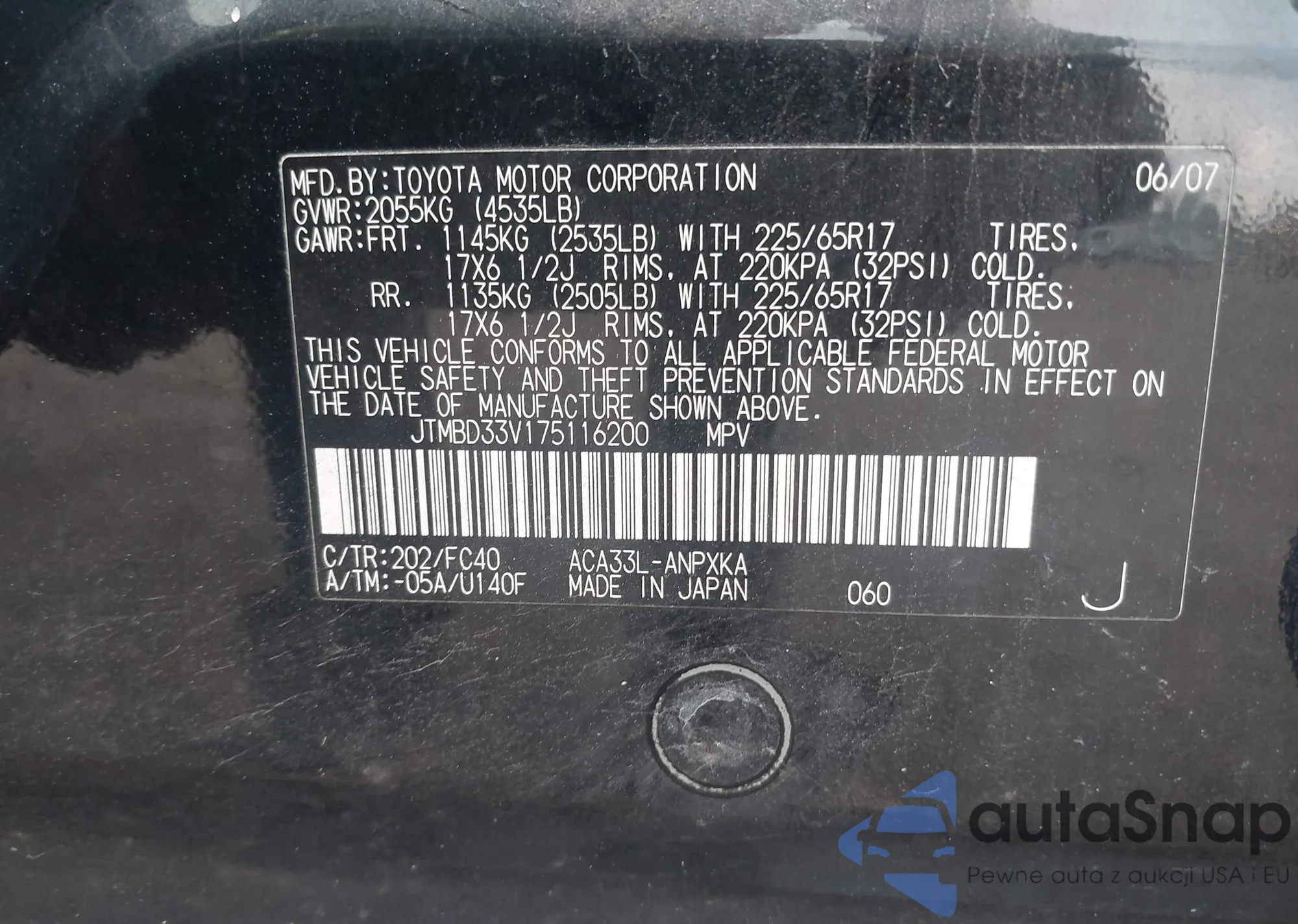 VIN: JTMBD33V175116200