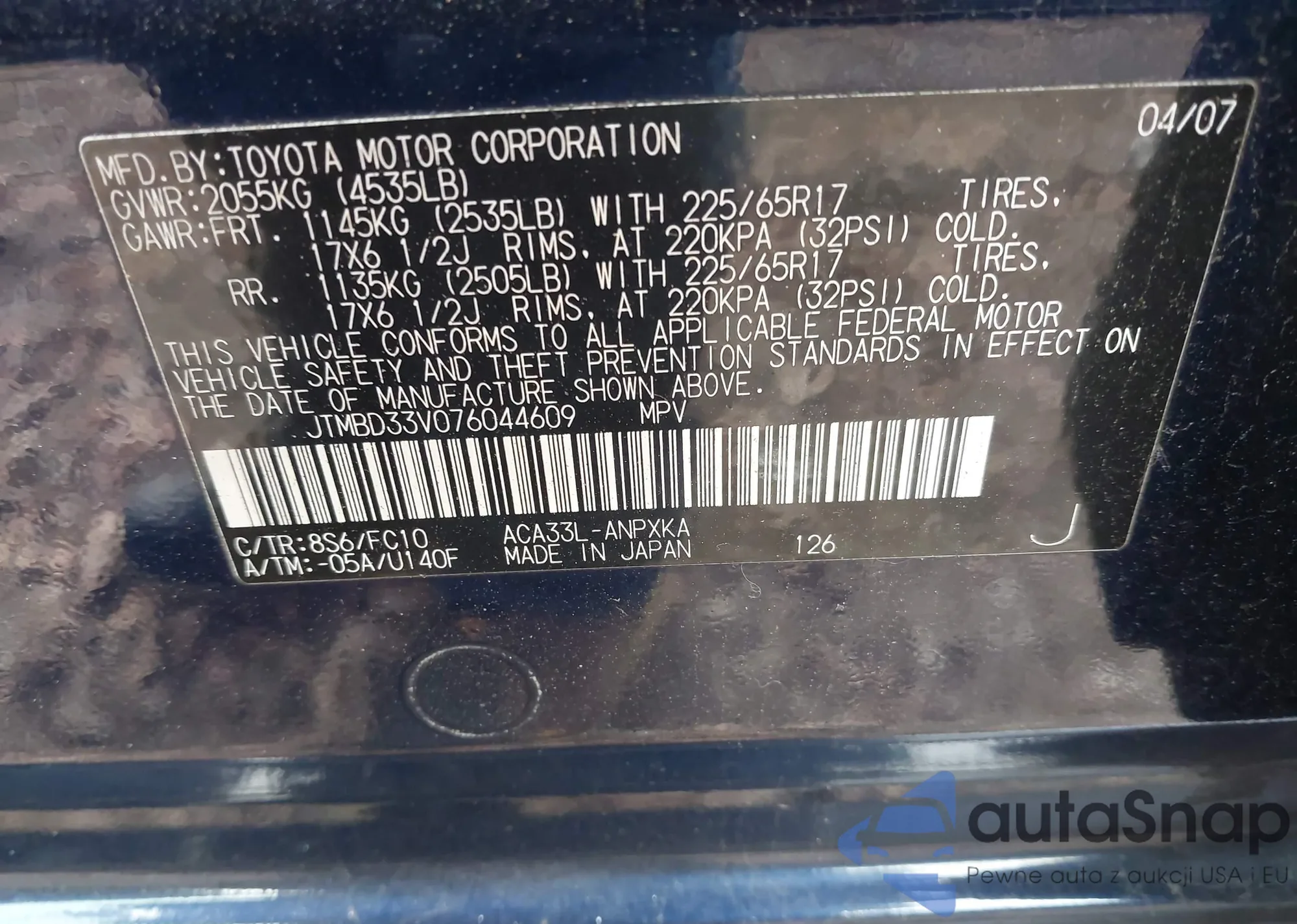 VIN: JTMBD33V076044609