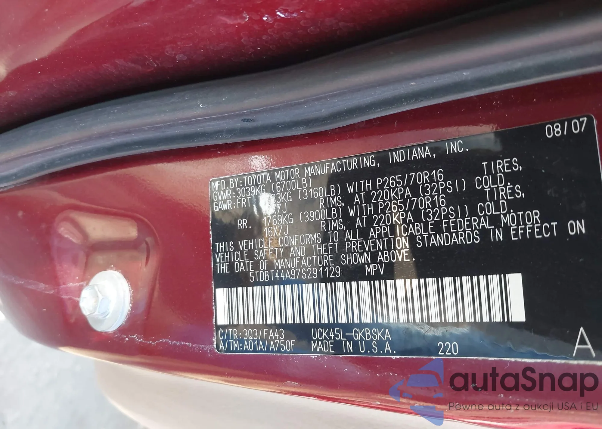 VIN: 5TDBT44A97S291129