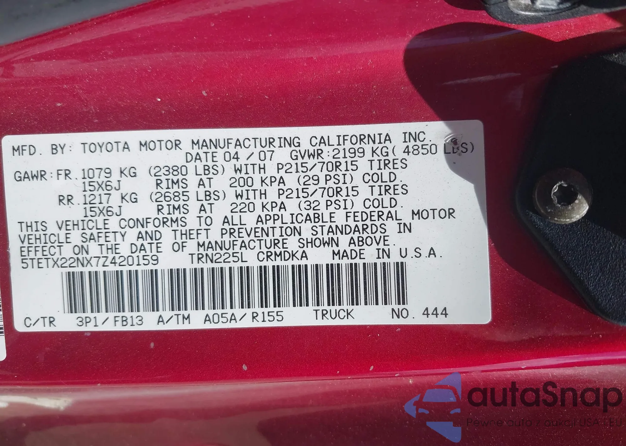 VIN: 5TETX22NX7Z420159