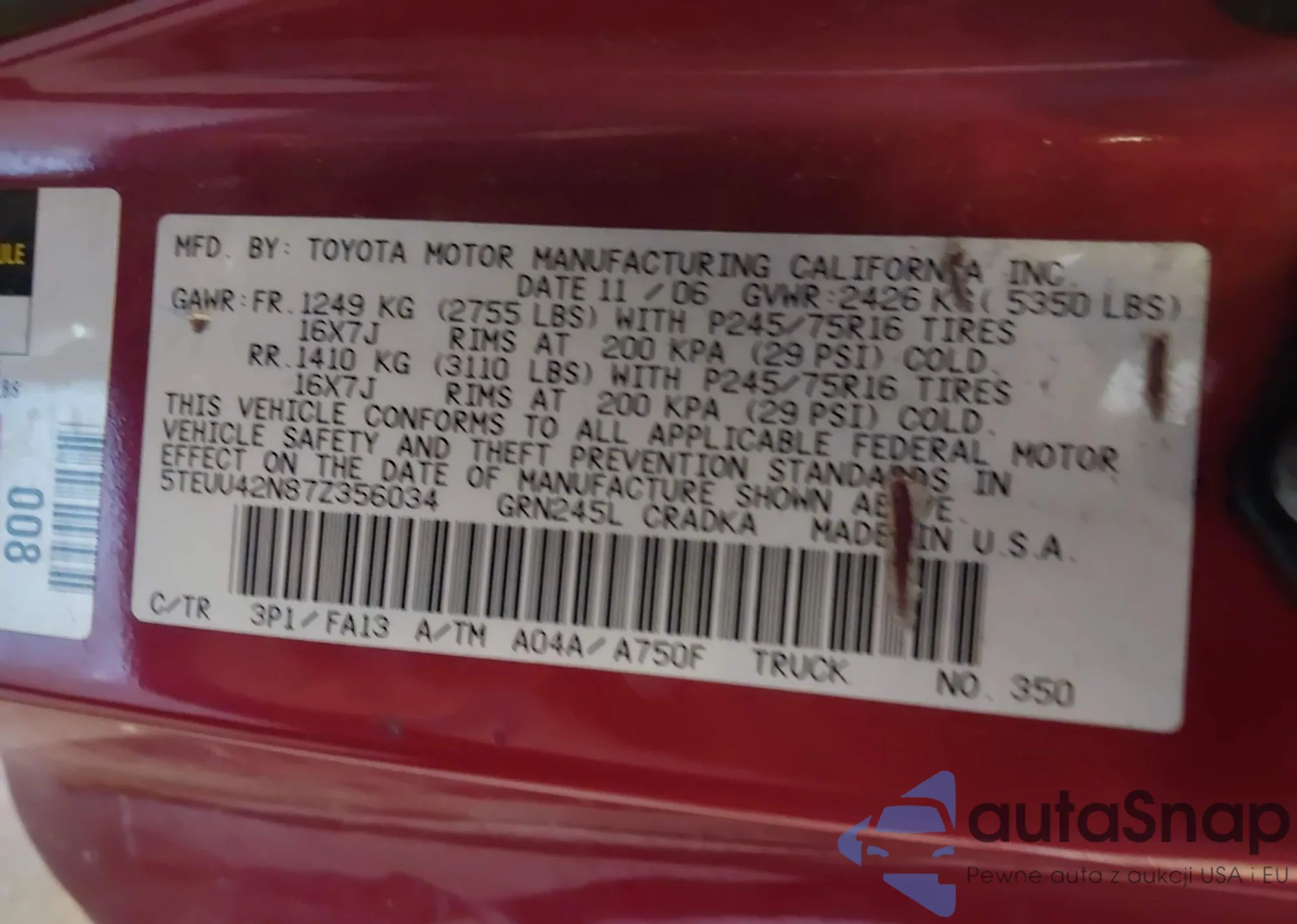 VIN: 5TEUU42N87Z356034