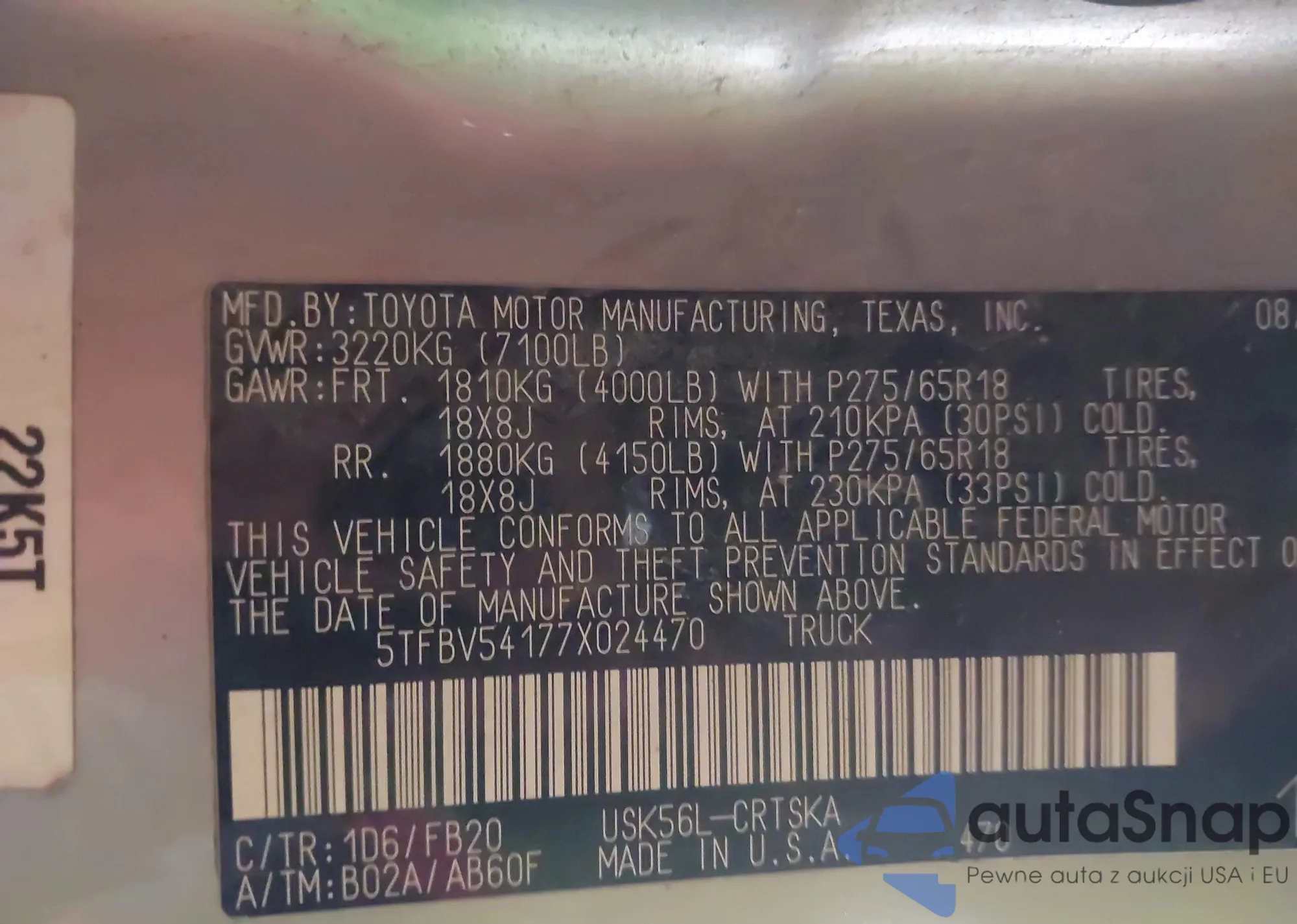 VIN: 5TFBV54177X024470