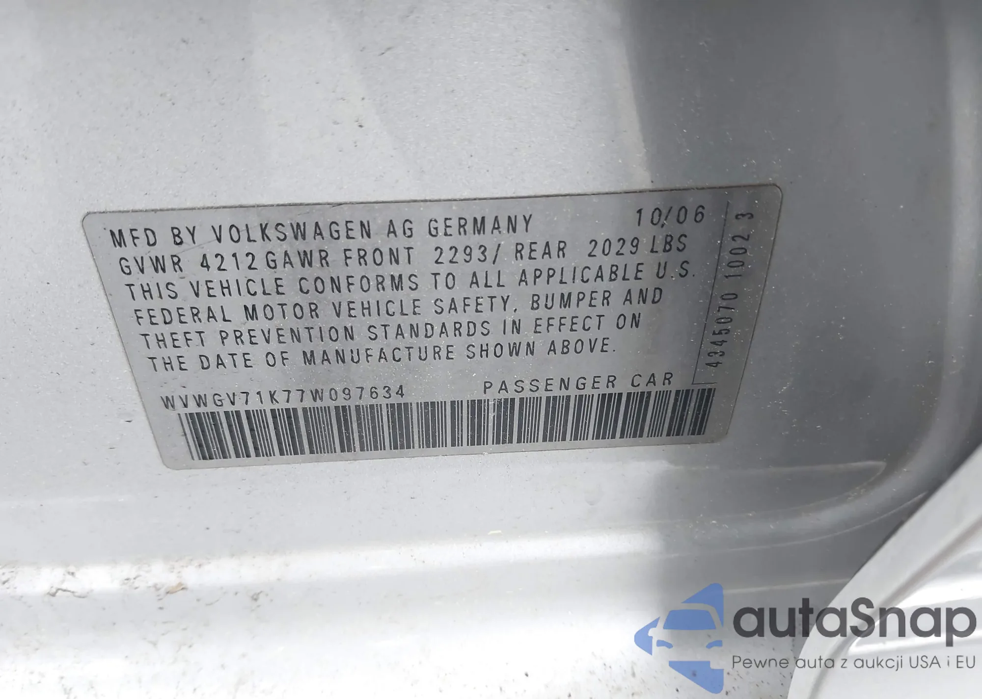 VIN: WVWGV71K77W097634