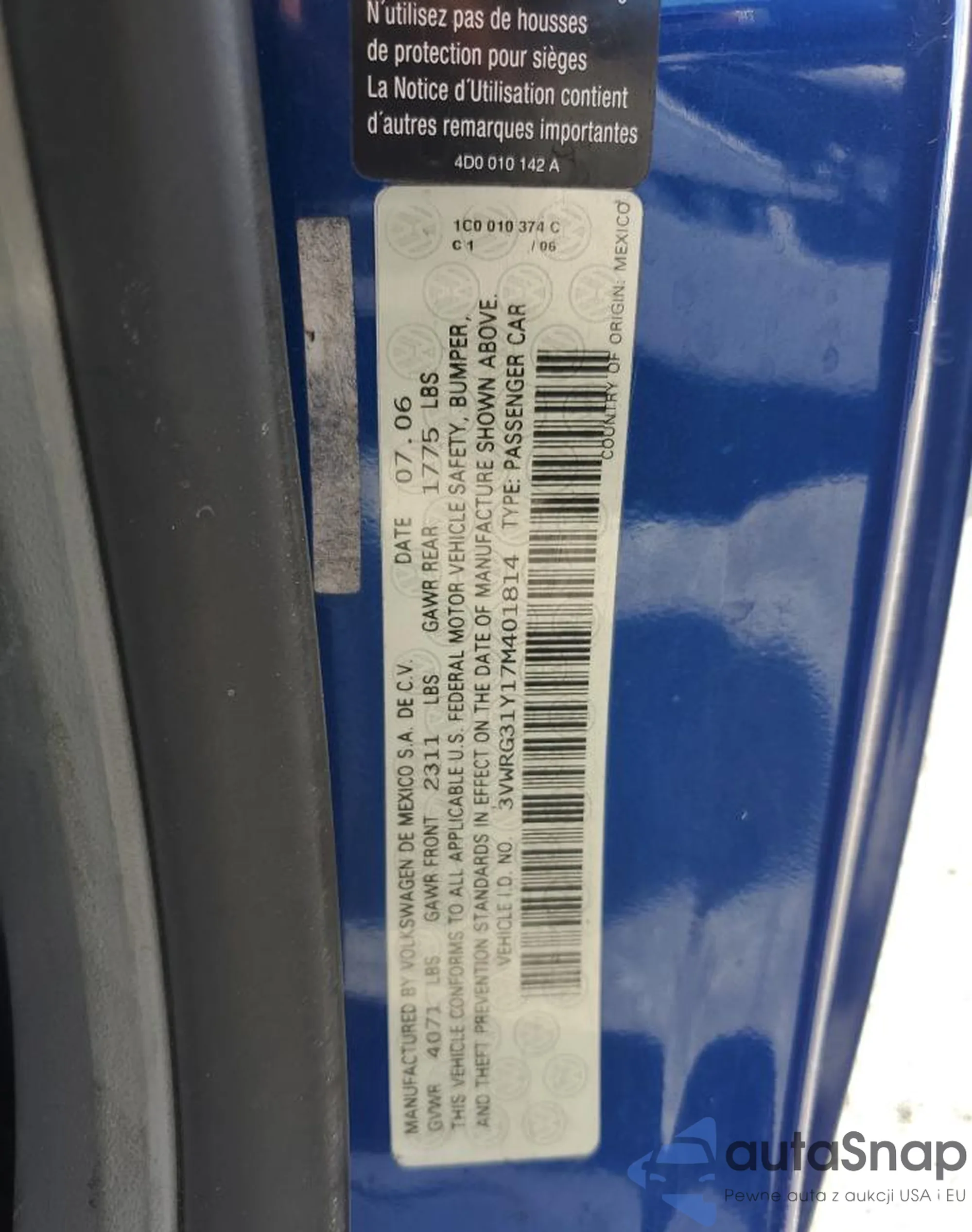 VIN: 3VWRG31Y17M401814