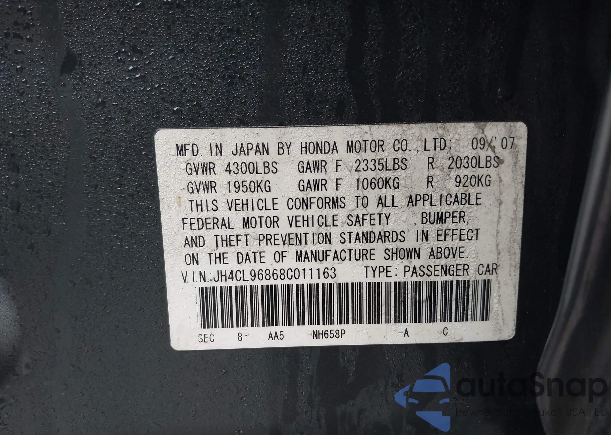 VIN: JH4CL96868C011163