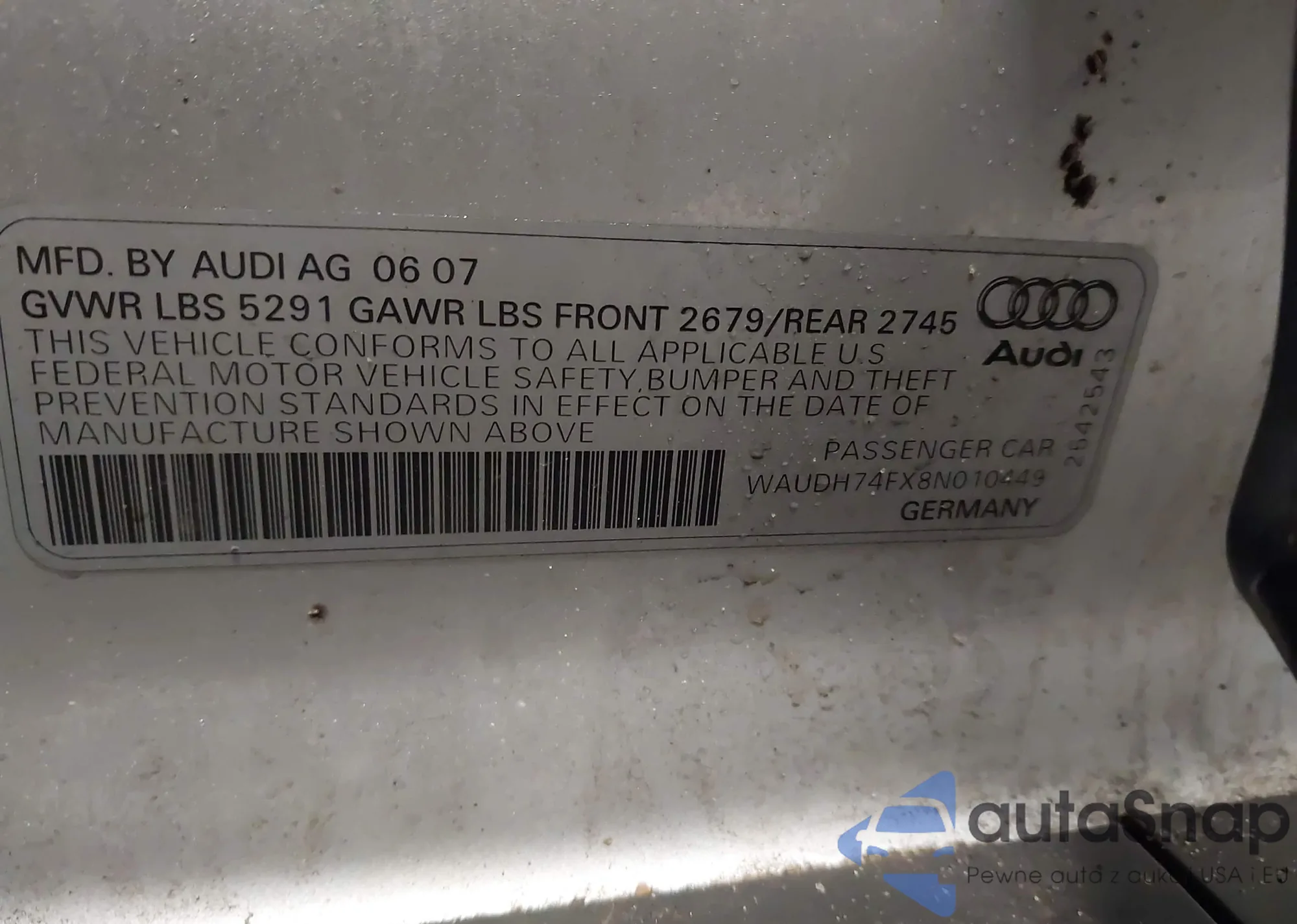 VIN: WAUDH74FX8N010449