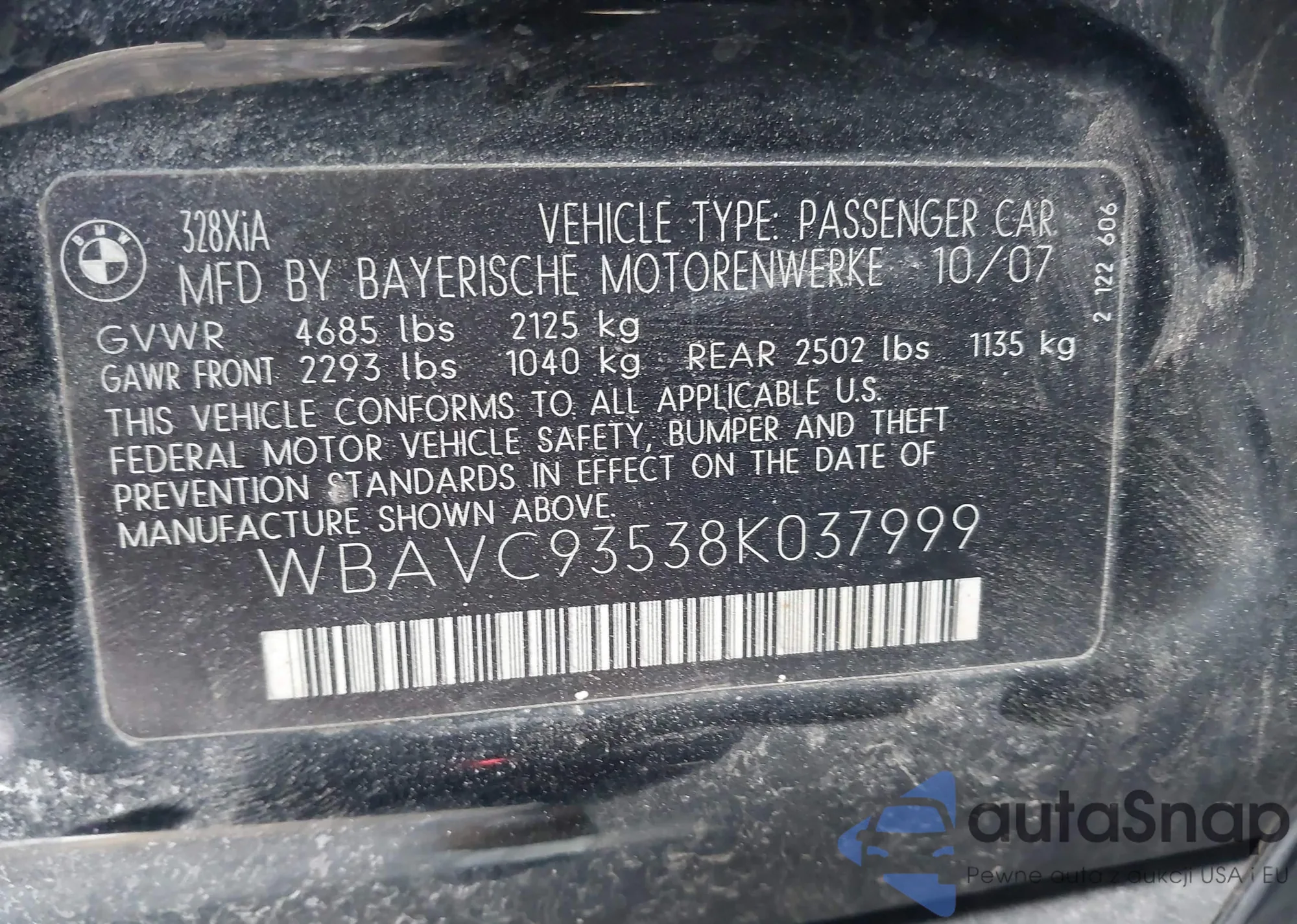VIN: WBAVC93538K037999