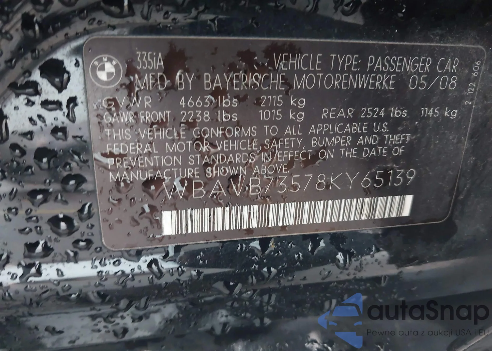 VIN: WBAVB73578KY65139