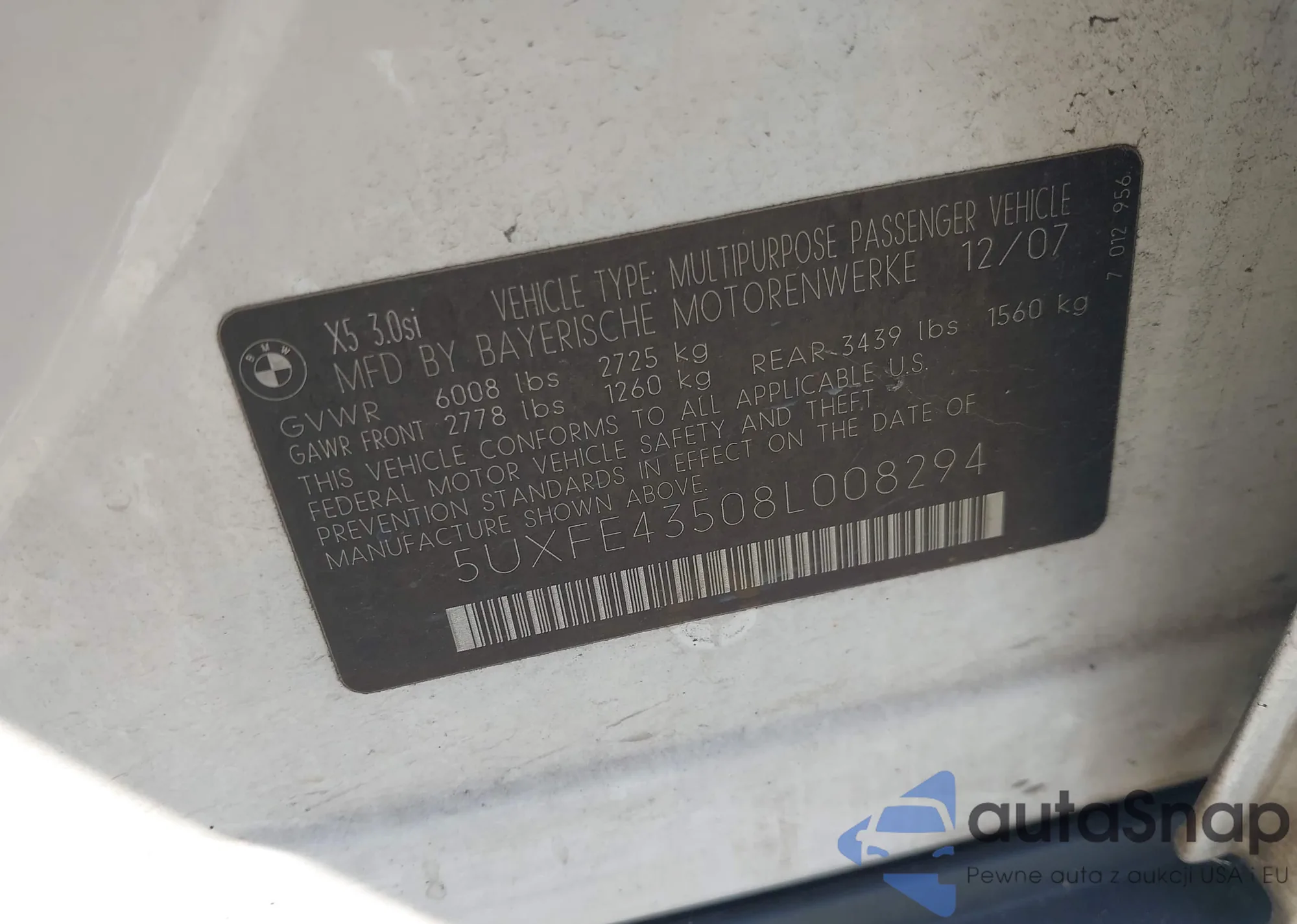 VIN: 5UXFE43508L008294