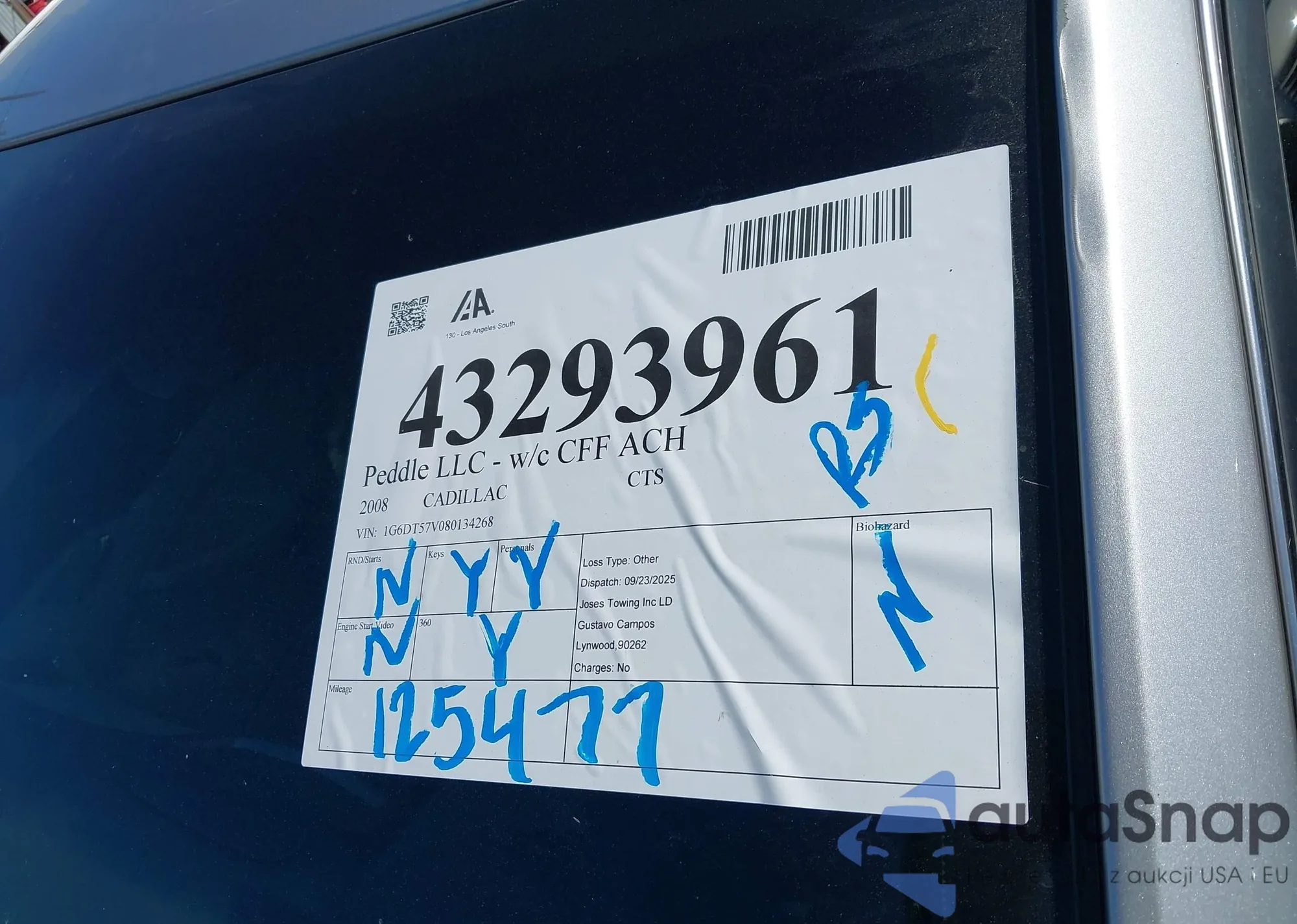 Месторасположение аукциона: los angeles south (ca)