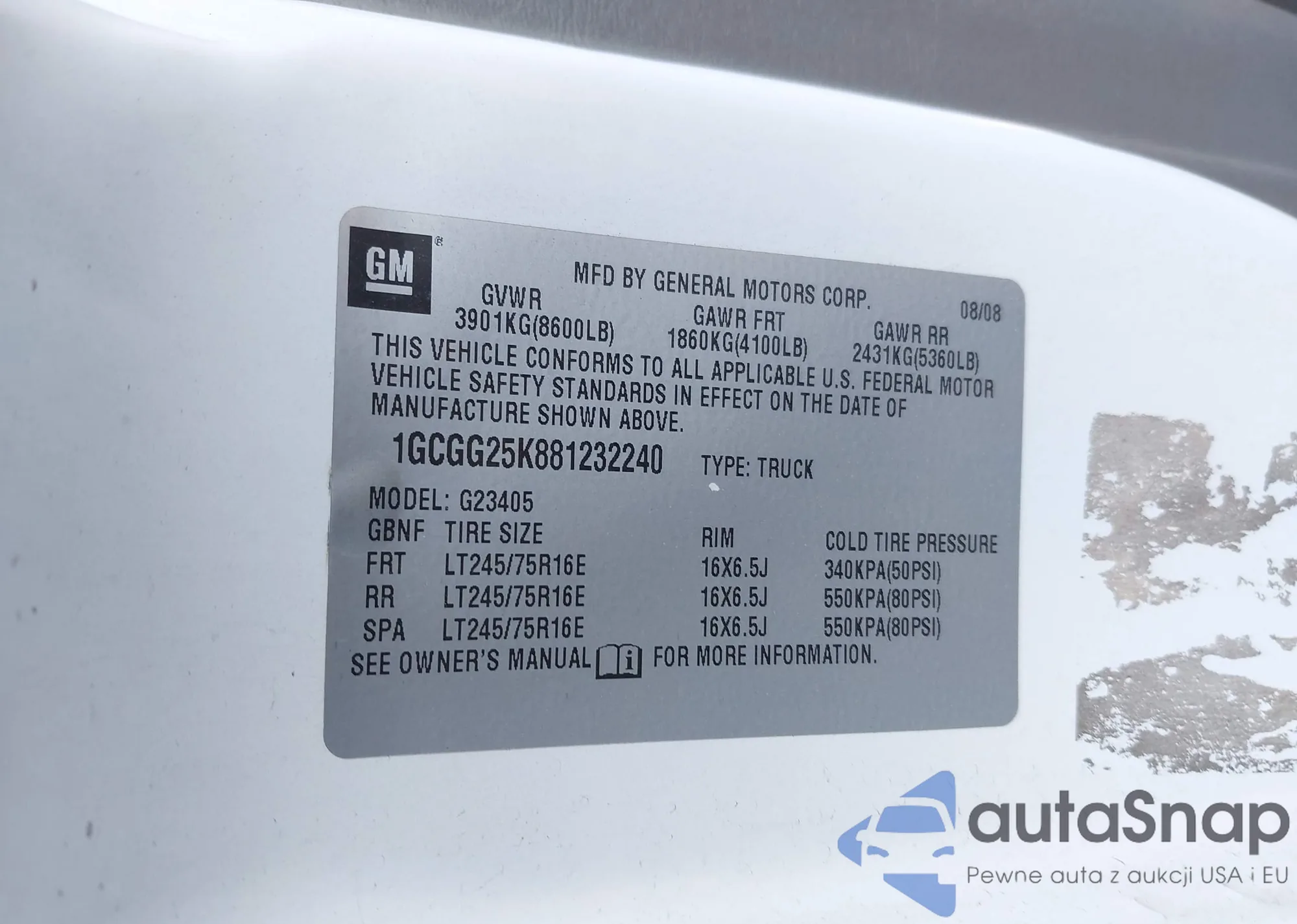 Автомобиль Chevrolet Express 2008 (VIN 1GCGG25K881232240) ранее не участвовал в торгах. Документы чистые, пробег соответствует или ниже среднего по рынку. Продаётся страховой компанией — рекомендуем покупку. Доставка в порт займет около 6–8 недель.