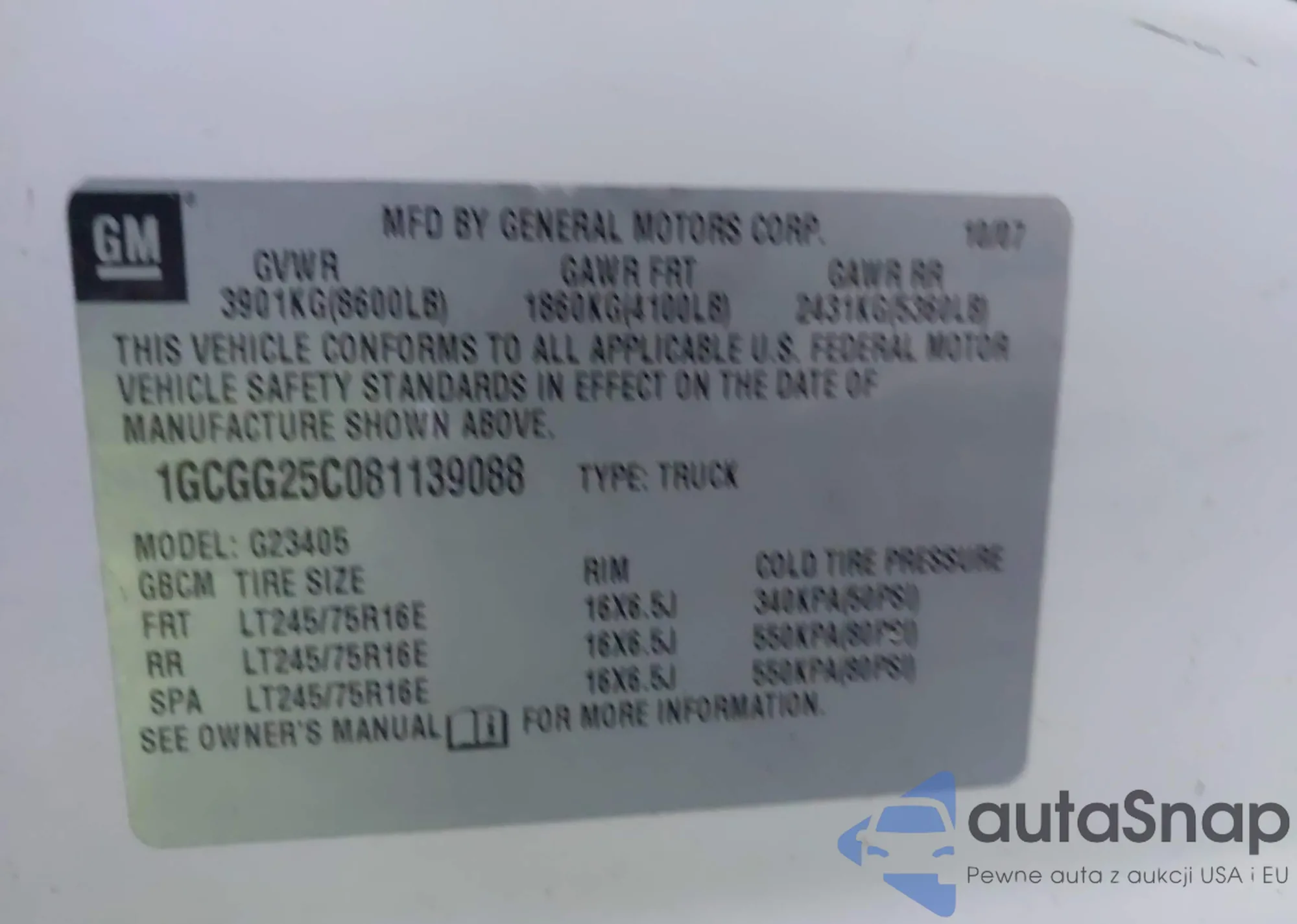 VIN: 1GCGG25C081139088