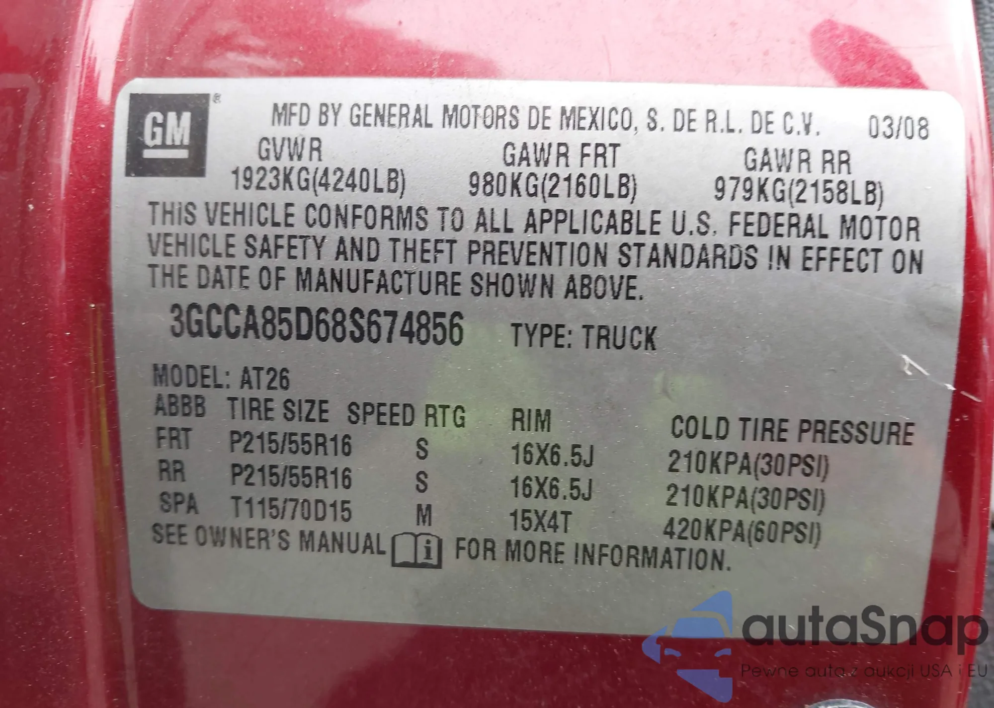 VIN: 3GCCA85D68S674856