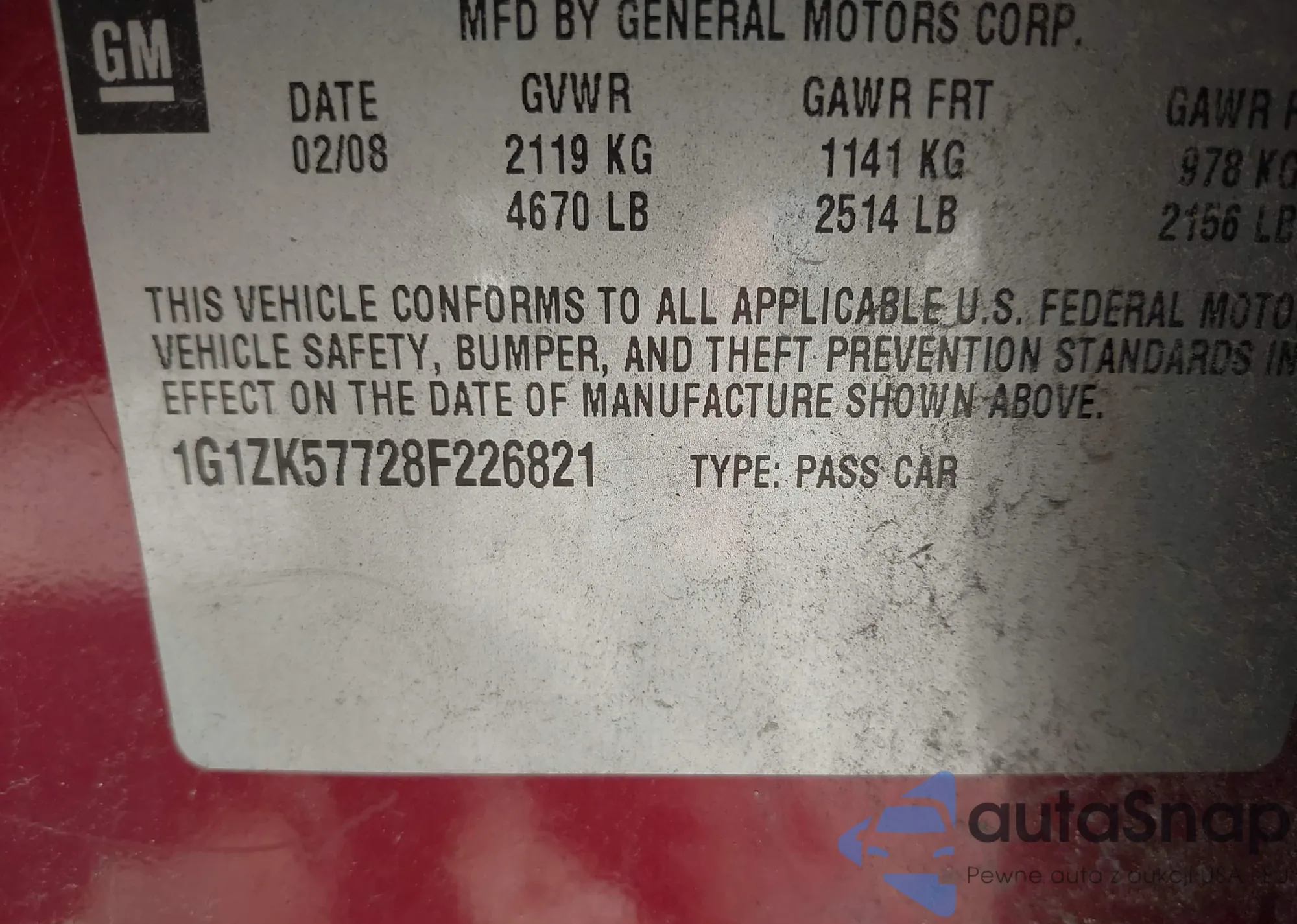 VIN: 1G1ZK57728F226821