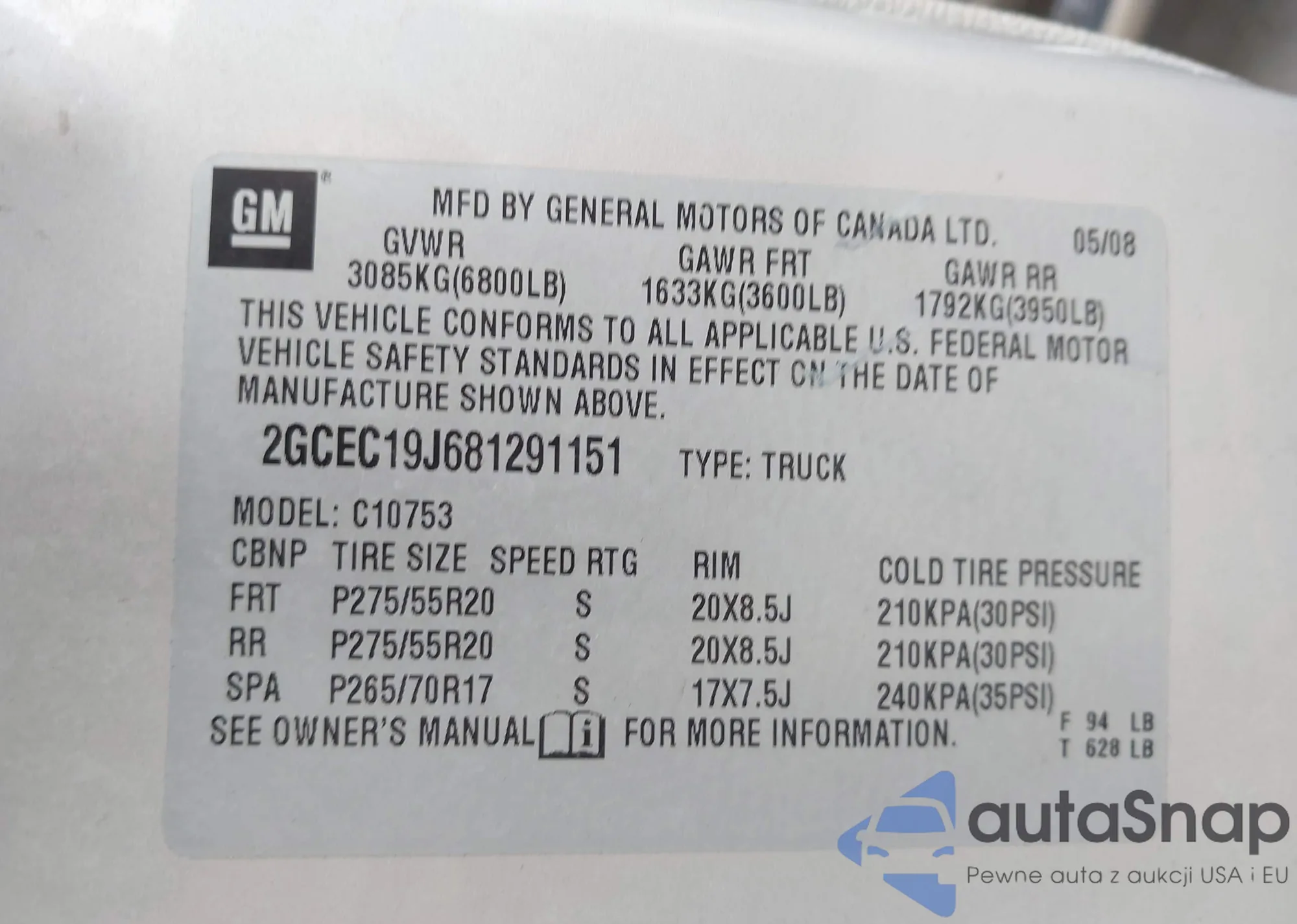 VIN: 2GCEC19J681291151