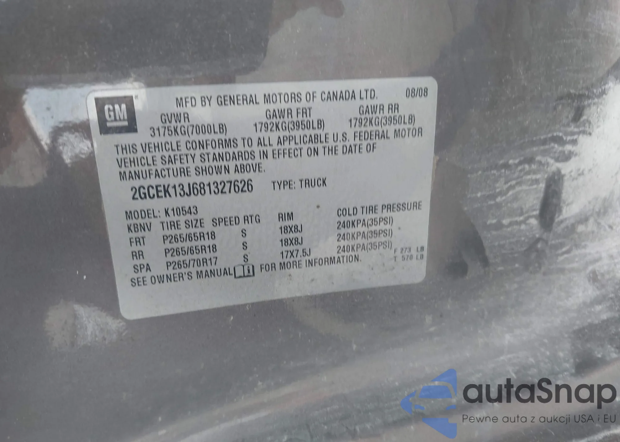 VIN: 2GCEK13J681327626