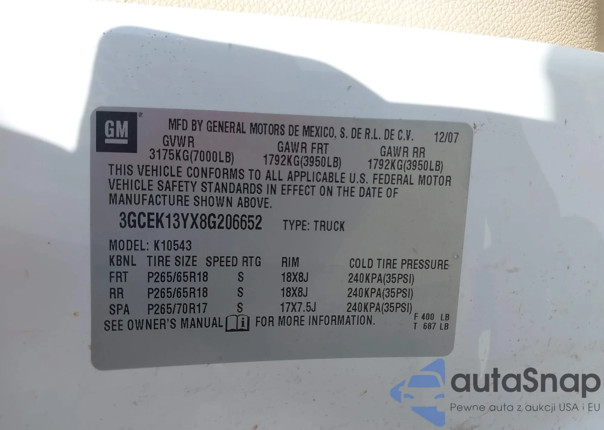 Автомобиль Chevrolet Silverado 2008 (VIN 3GCEK13YX8G206652) ранее не участвовал в торгах. Документы чистые, пробег соответствует или ниже среднего по рынку. Продаётся страховой компанией — рекомендуем покупку. Доставка в порт займет около 6–8 недель.