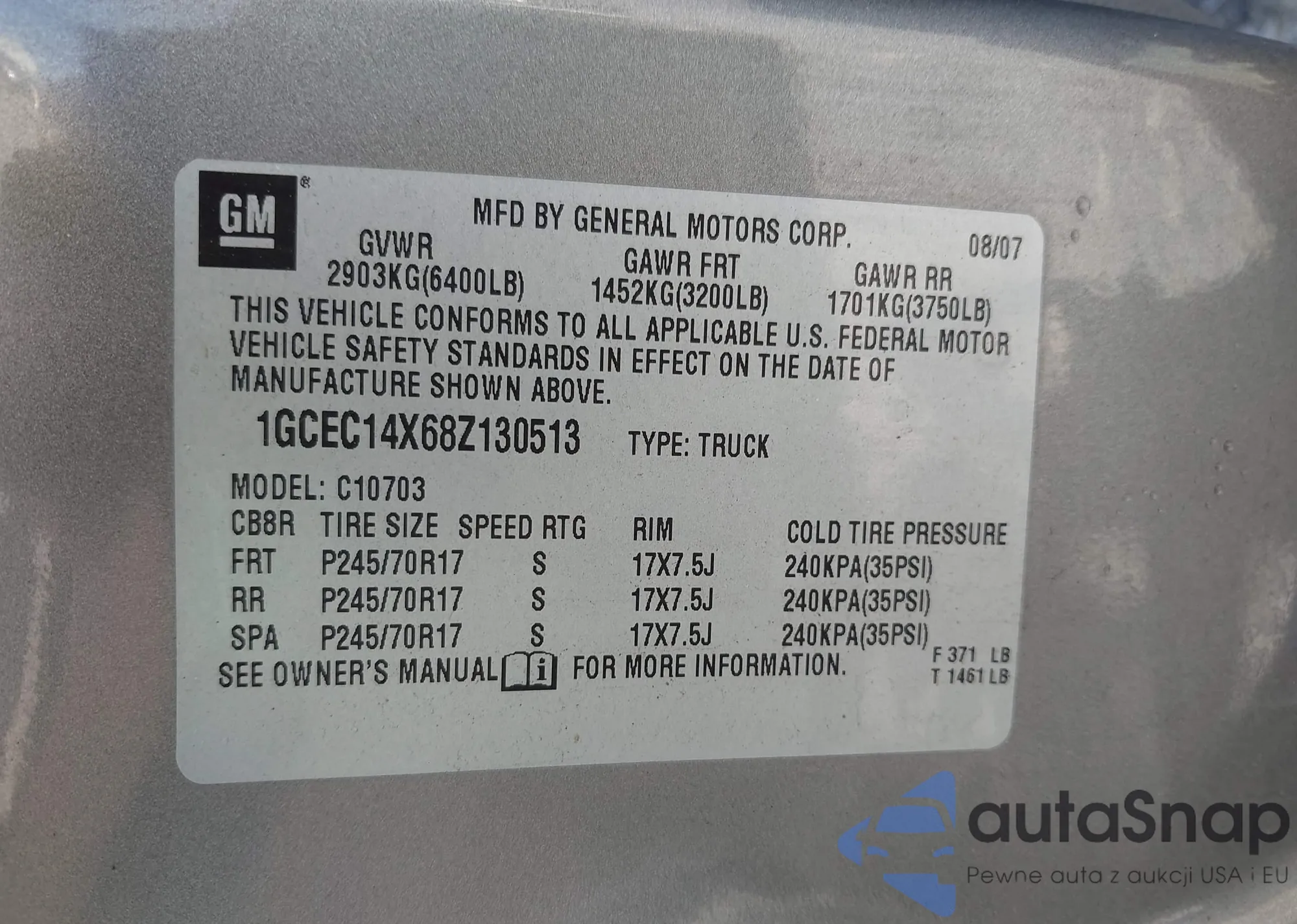 VIN: 1GCEC14X68Z130513