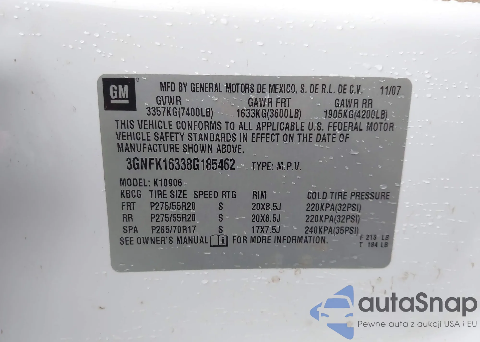 VIN: 3GNFK16338G185462