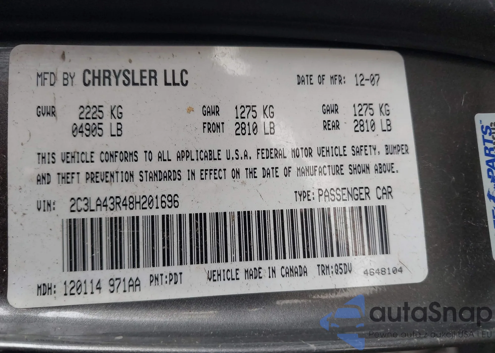 VIN: 2C3LA43R48H201696
