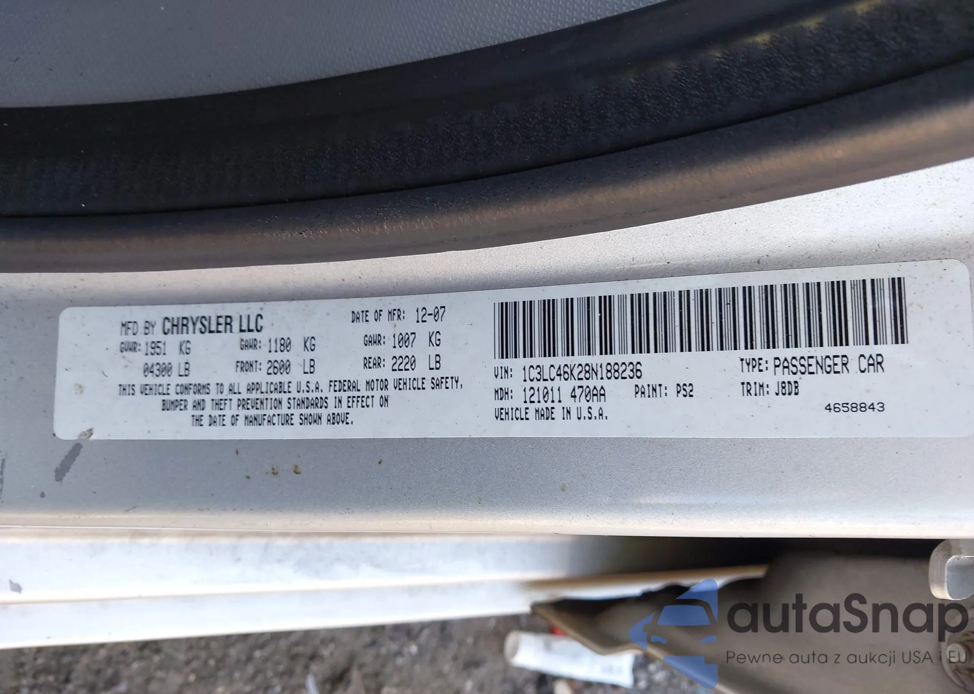 VIN: 1C3LC46K28N188236