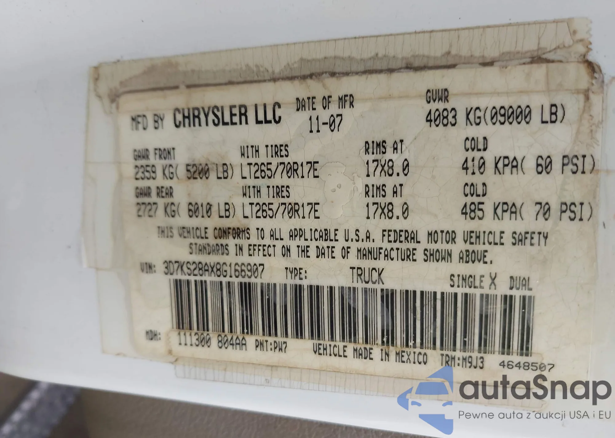 VIN: 3D7KS28AX8G166907