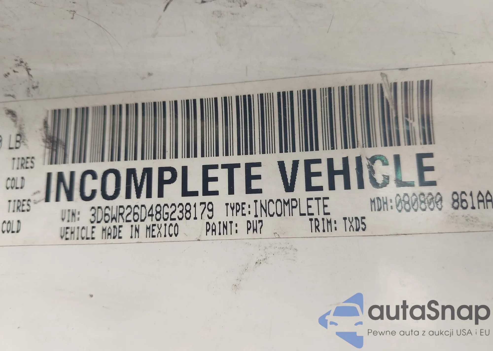 Автомобиль Dodge RAM 2008 (VIN 3D6WR26D48G238179) ранее не участвовал в торгах. Документы чистые, пробег соответствует или ниже среднего по рынку. Продаётся страховой компанией — рекомендуем покупку. Доставка в порт займет около 6–8 недель.