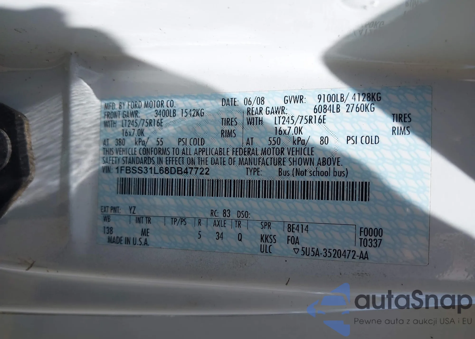 VIN: 1FBSS31L68DB47722