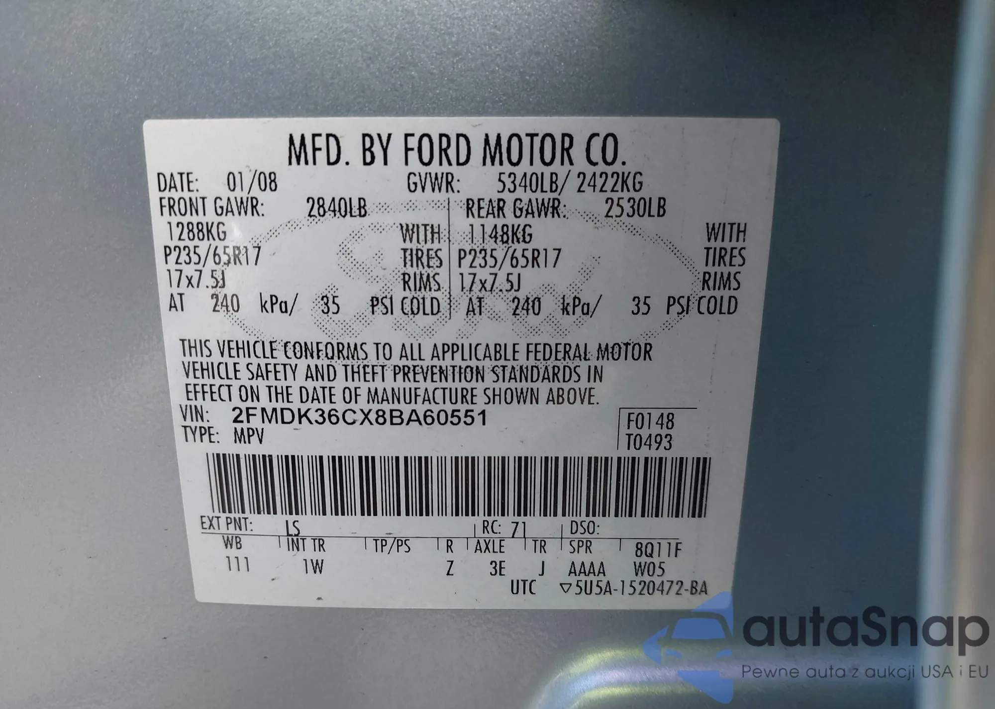 VIN: 2FMDK36CX8BA60551