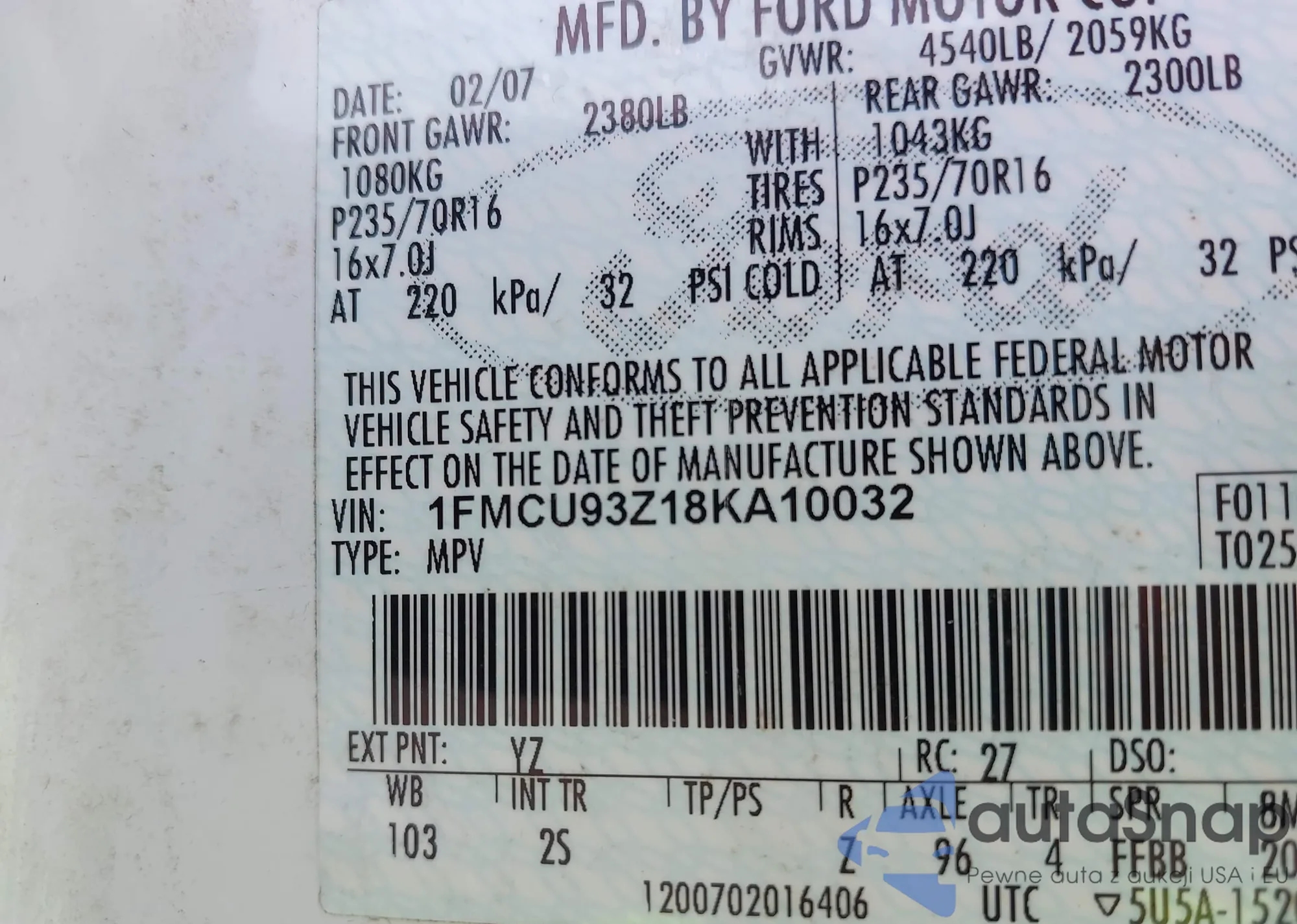 VIN: 1FMCU93Z18KA10032