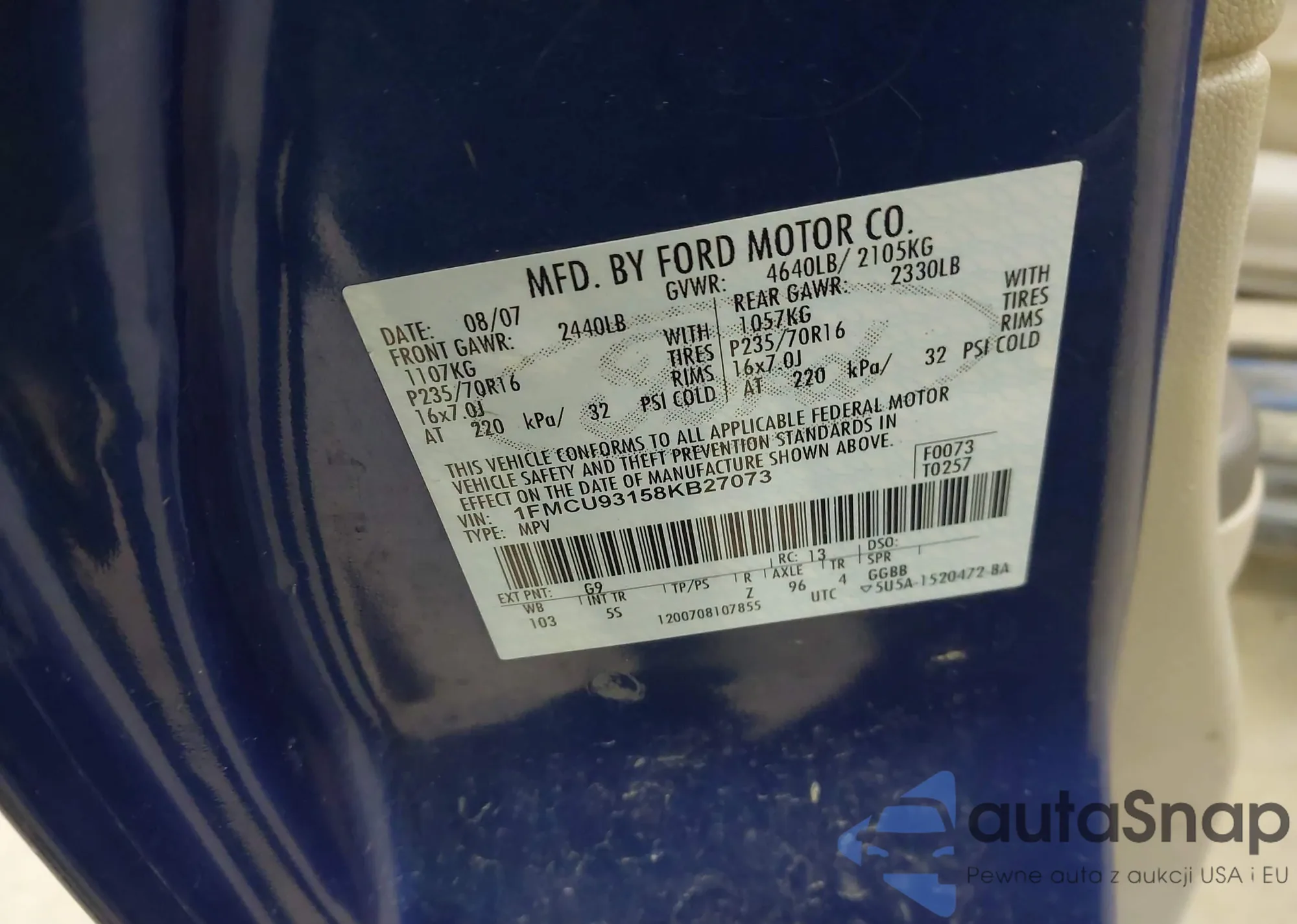 VIN: 1FMCU93158KB27073